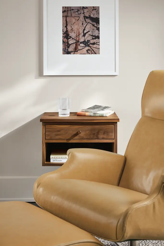 The Linear nightstand has a unique design and wall-mounting system so you can hang it on any wall. Built of sustainably sourced U.S. solid wood in a small woodworking shop in northern Wisconsin, the Linear collection has been a cornerstone of Room & Board since 1991.