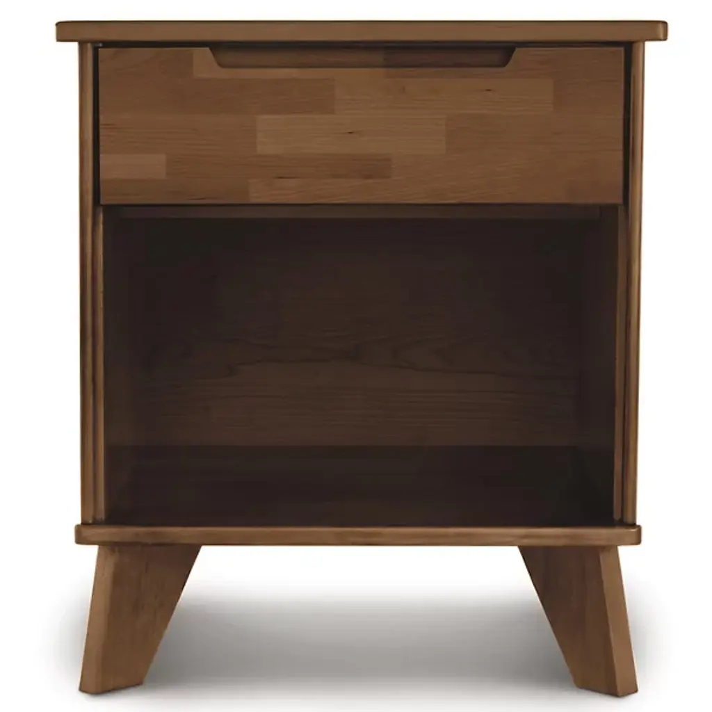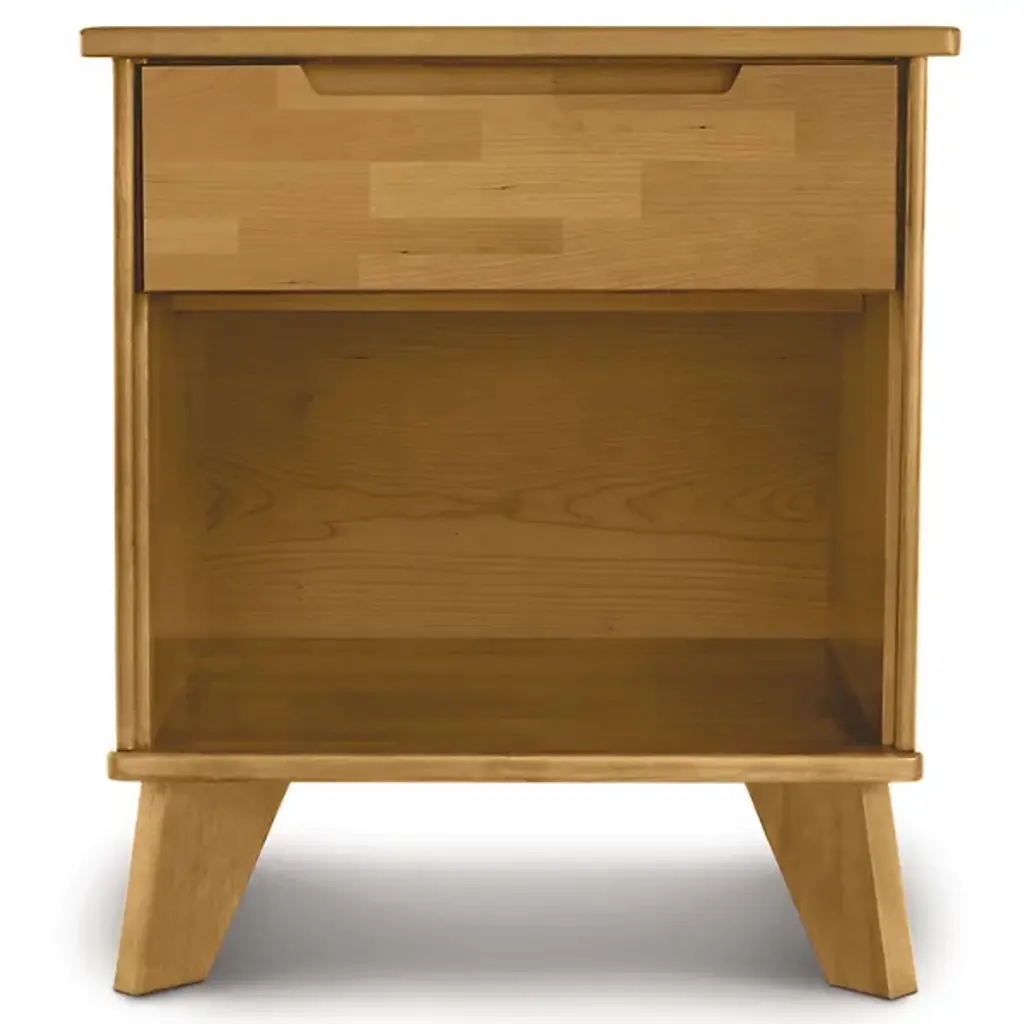 Keep your bedtime essentials always within arms reach with the Linn 1 Drawer Nightstand by Copeland Furniture. Made from rich hardwood with a solid oak finish, this bedside table is perfect for a guest or master bedroom setting. The drawer interiors are sanded smooth and the glides help ensure proper alignment at all times. Use this nightstand table as a home for your cell phone, glass of water or any other nighttime essentials each and every night.