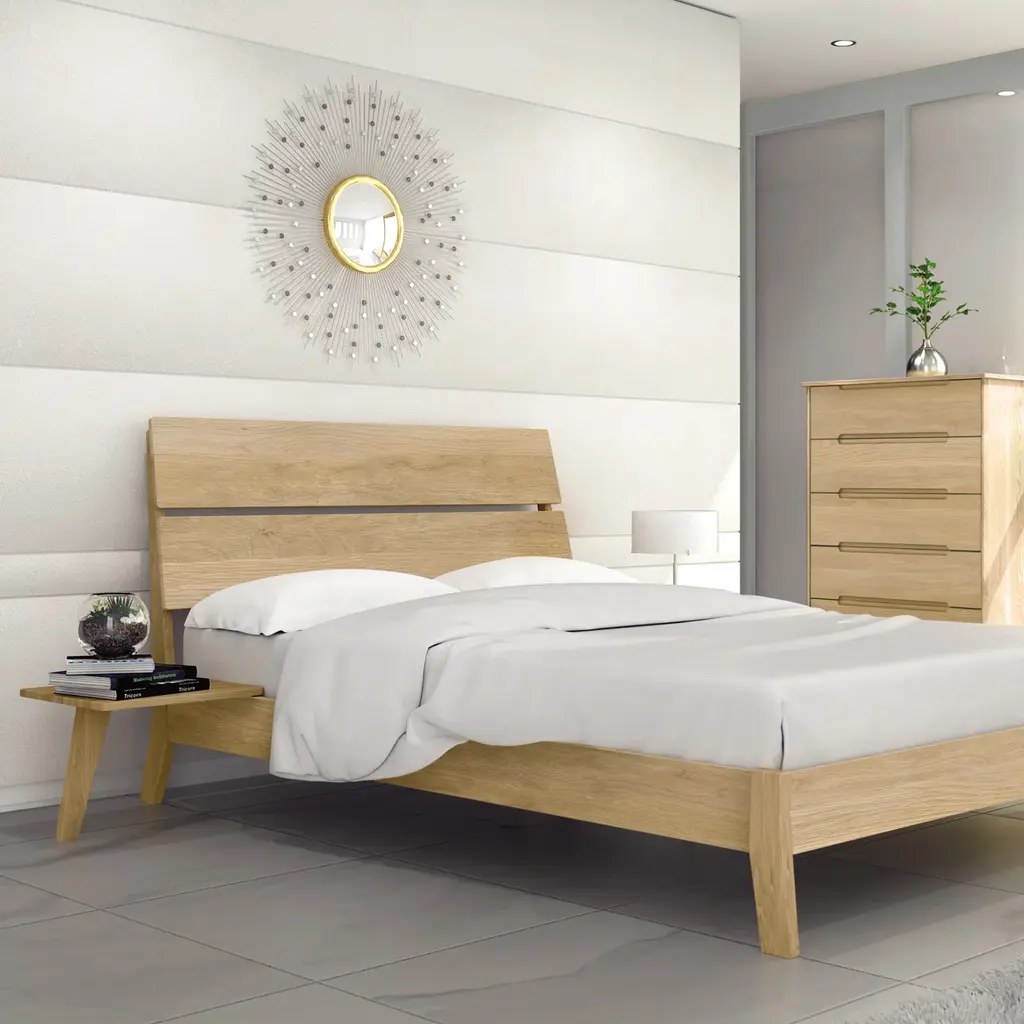 The Linn Attached Nightstand pairs perfectly with the Linn Platform Bed by Copeland Furniture. Finely crafted from solid hardwood, this innovative nightstand simply attaches to the side of the bed. Say goodbye to clutter and embrace the ease of minimalist décor with this contemporary attachable nightstand.All Linn Bedroom Furniture is finished using Greenguard certified low emissions finishes. The woods used in the construction of this collection are locally sourced and come from sustainably managed North American hardwood forests. Base price represents nightstand in natural cherryShown in natural cherryMatching furniture available in our Linn Furniture Collection