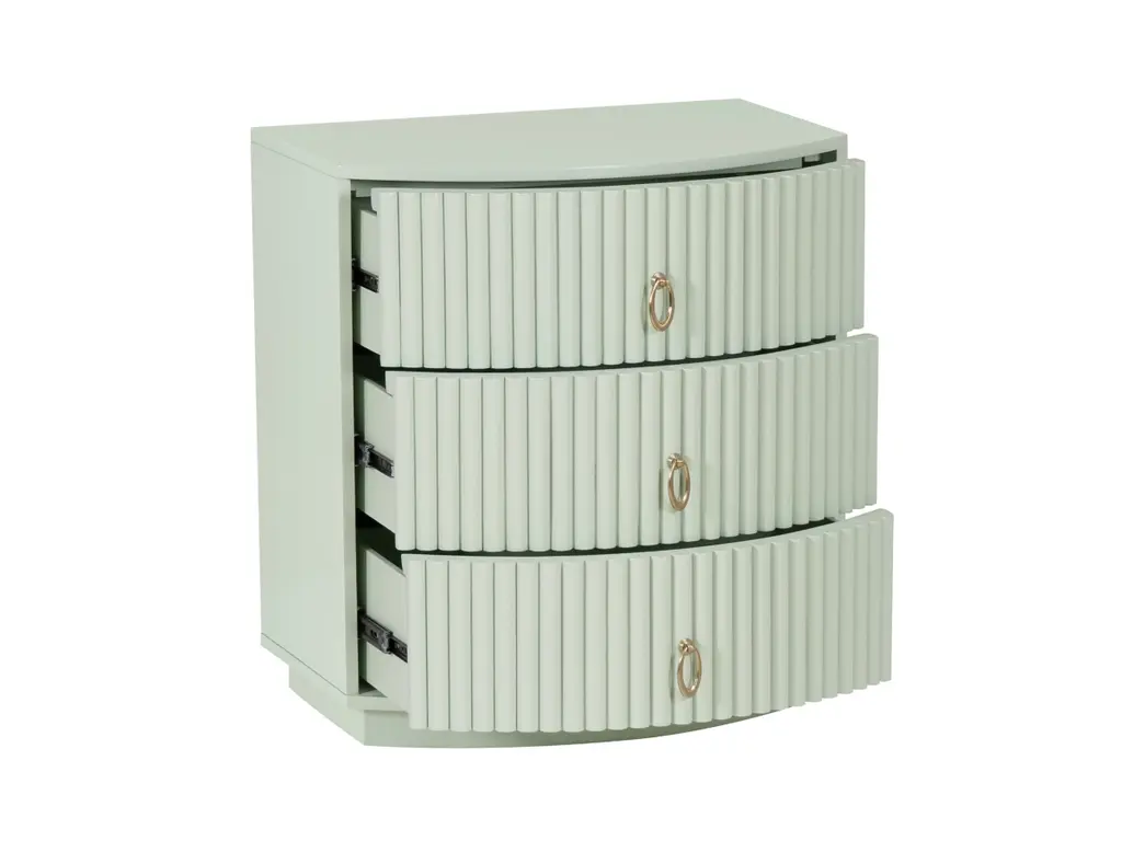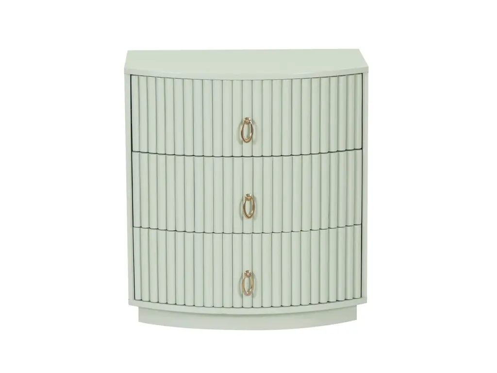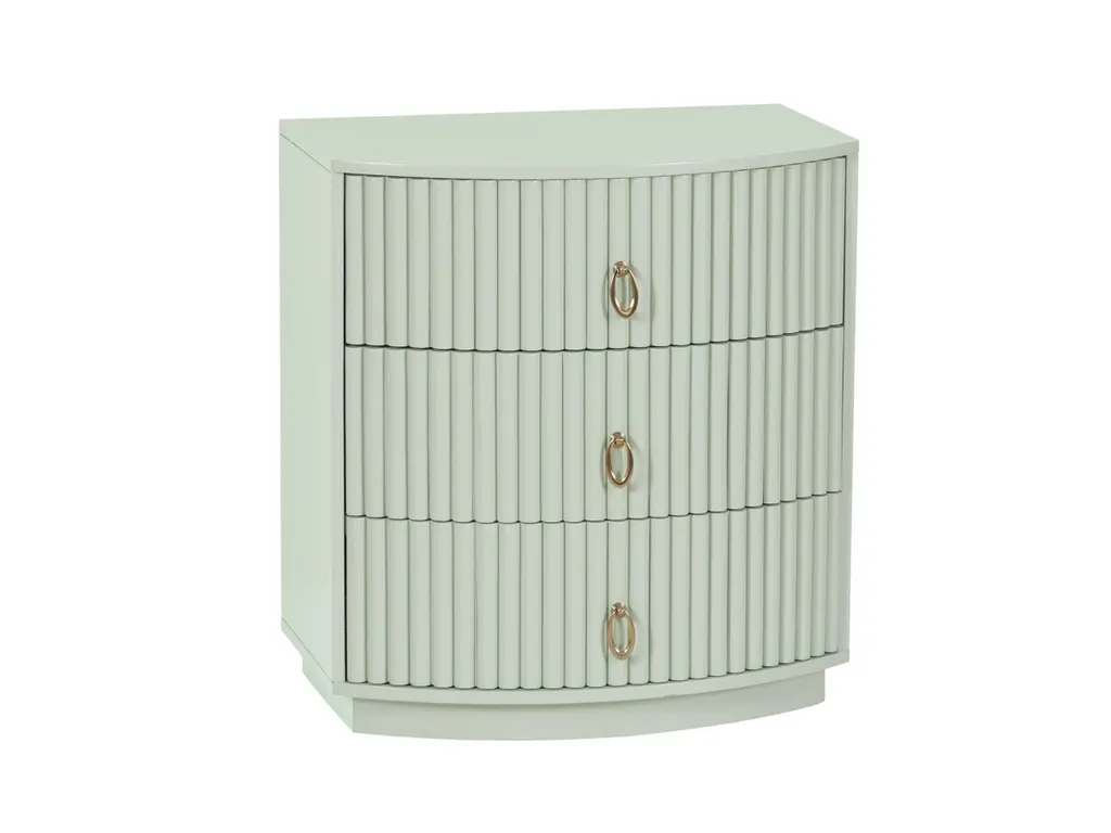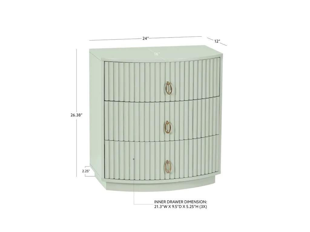 This stylish 3-drawer nightstand in a beautiful sage green lacquer finish adds a refreshing touch to your bedroom. Crafted from a durable blend of acacia, MDF, and plywood, this nightstand enhances your decor and offers practical storage solutions. With a weight capacity of 50 lbs., it's perfect for holding your bedside essentials. Measuring 24" L x 16" D x 26.38" H, it fits seamlessly into any space. Also available in a sleek black, crisp white, and rich walnut, you can easily find the perfect match for your decor and transform your bedroom!