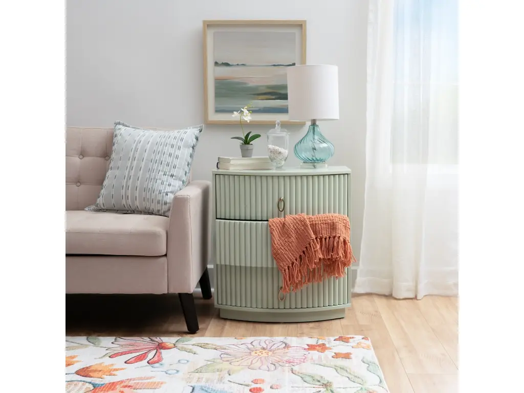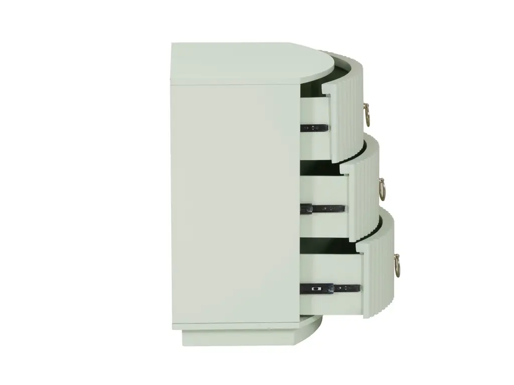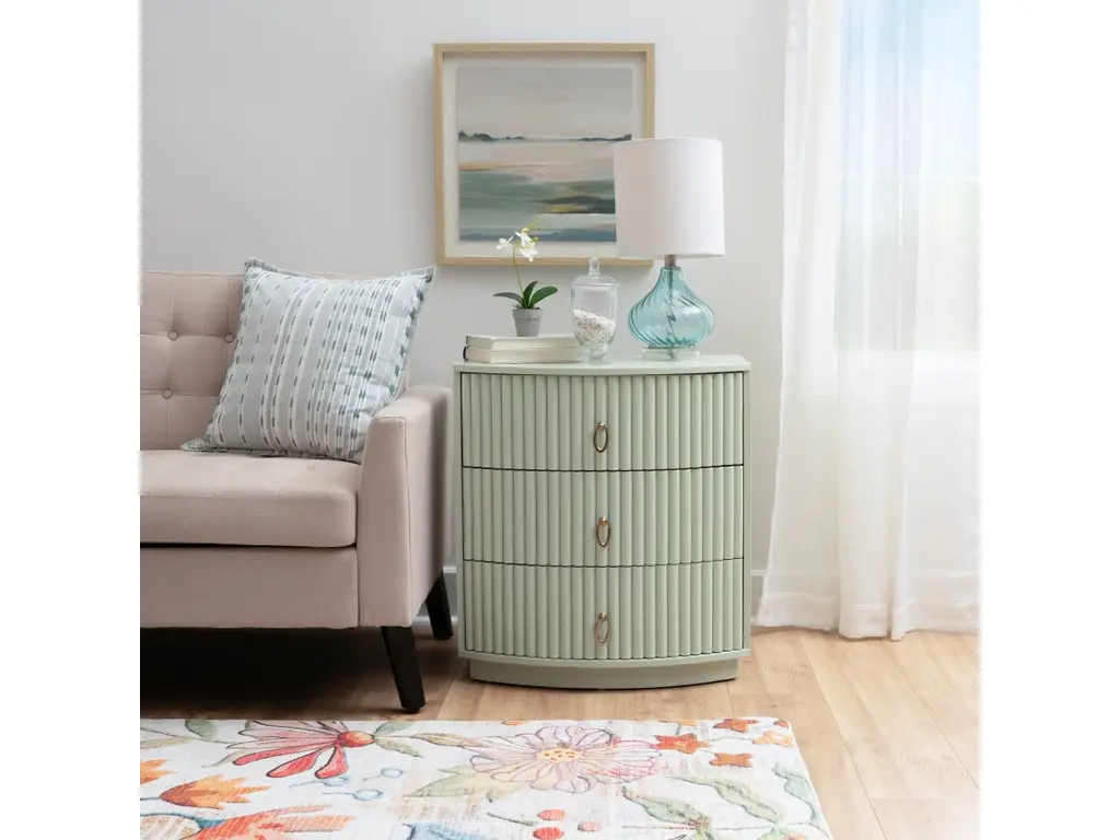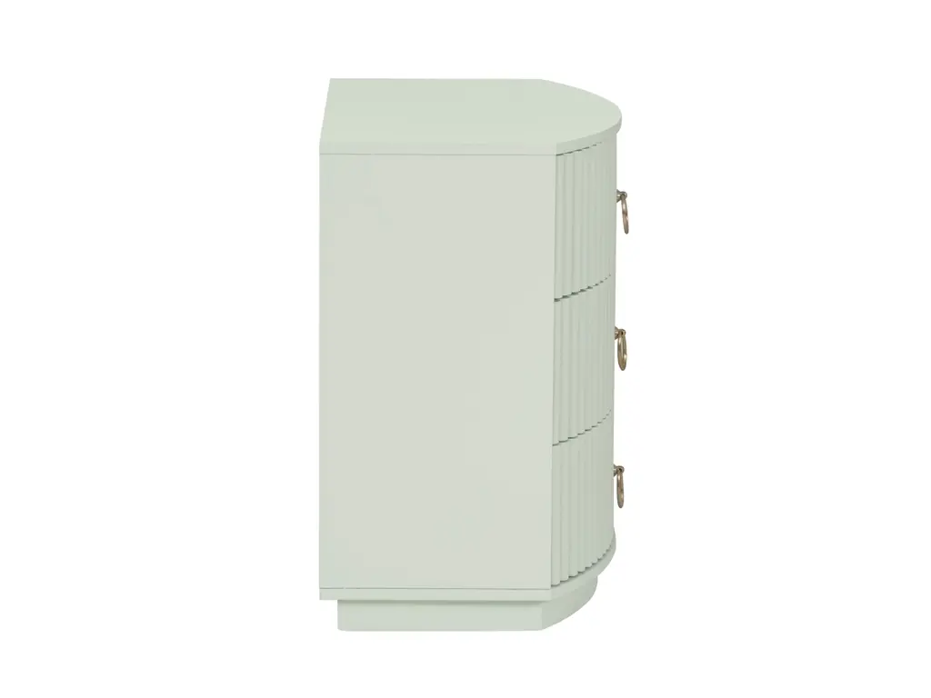 This stylish 3-drawer nightstand in a beautiful sage green lacquer finish adds a refreshing touch to your bedroom. Crafted from a durable blend of acacia, MDF, and plywood, this nightstand enhances your decor and offers practical storage solutions. With a weight capacity of 50 lbs., it's perfect for holding your bedside essentials. Measuring 24" L x 16" D x 26.38" H, it fits seamlessly into any space. Also available in a sleek black, crisp white, and rich walnut, you can easily find the perfect match for your decor and transform your bedroom!