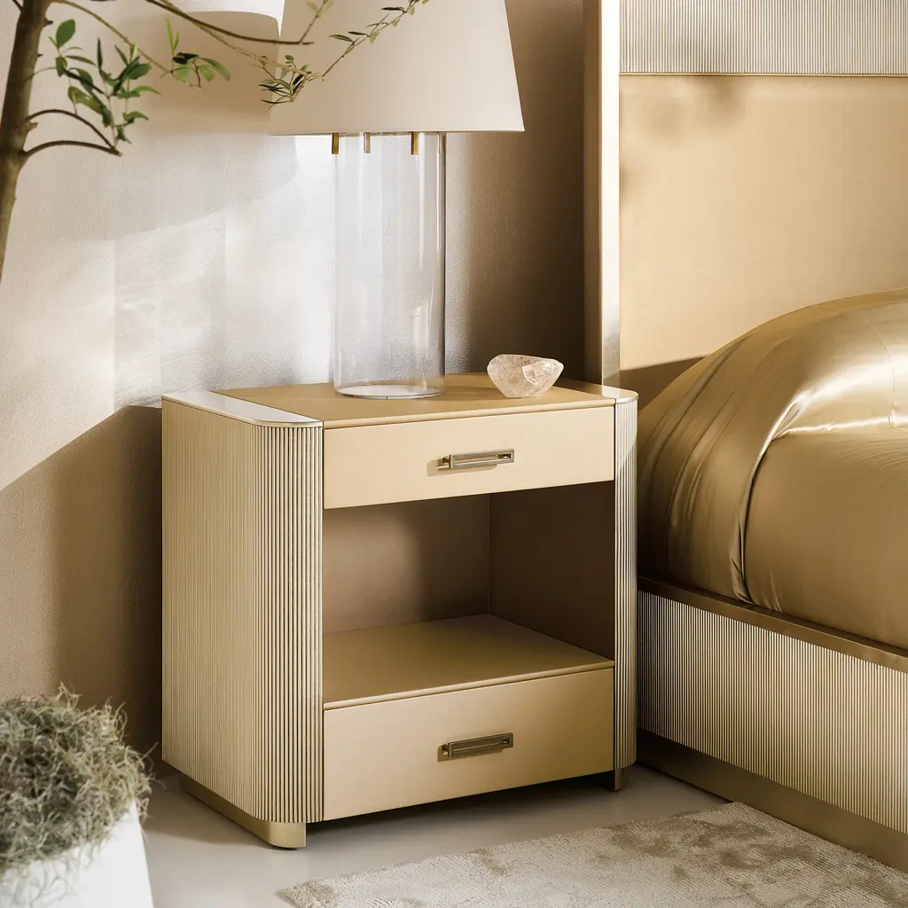 Balance either side of your primary or guest bed with the Love-Ly! Nightstand from Caracole. The sophisticated design features a softly rounded profile and exquisite fluted sides, while the elegant ring-pull hardware adds a touch of glamour. With a variety of lustrous finishes to choose from, this nightstand is the perfect addition to any luxurious bedroom. Highlights