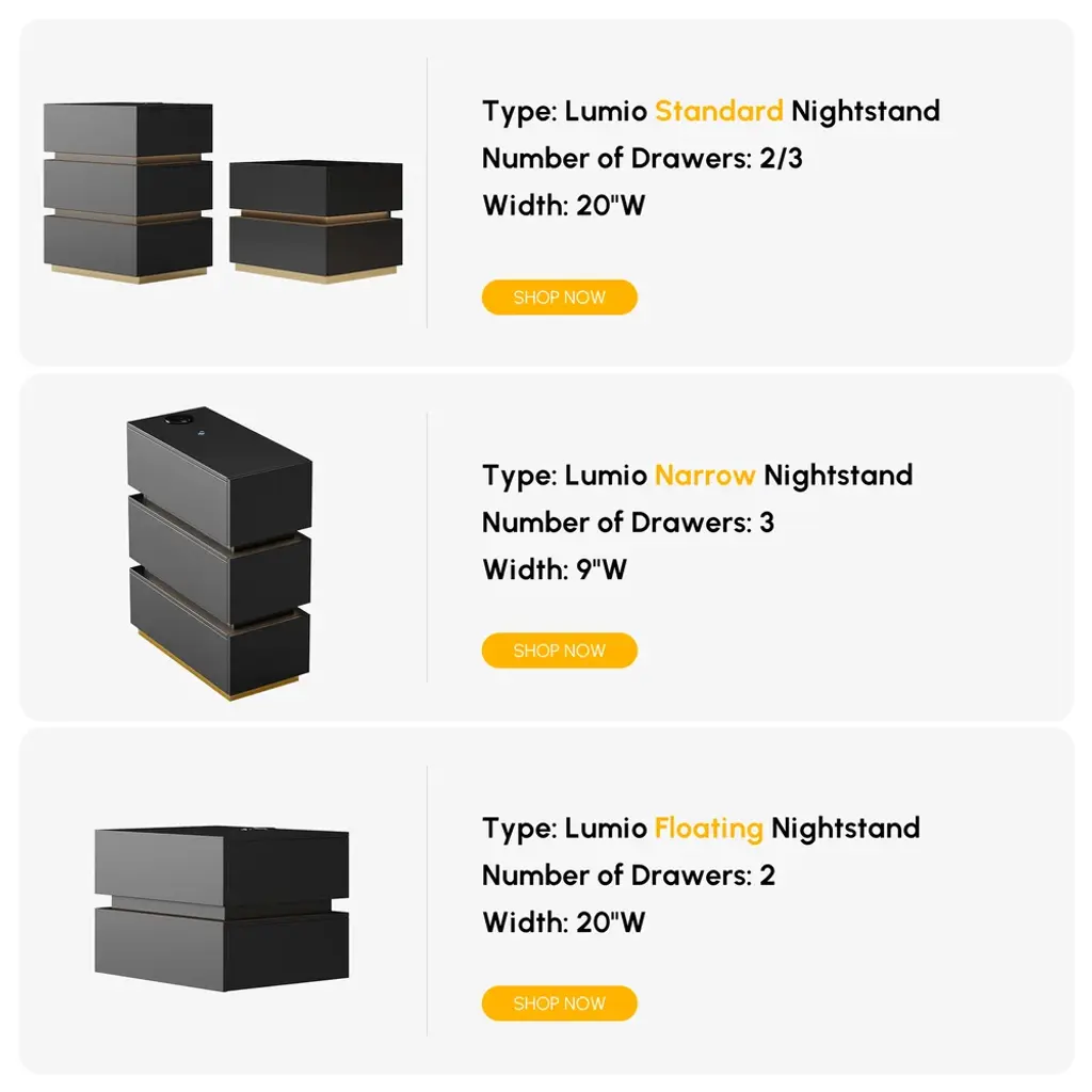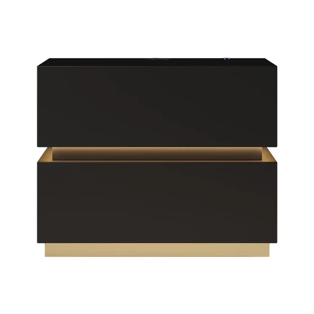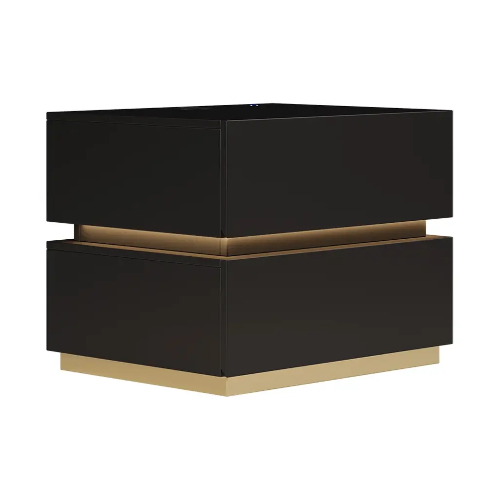 Lumio 2-Drawer Led Smart Black Nightstand With Light