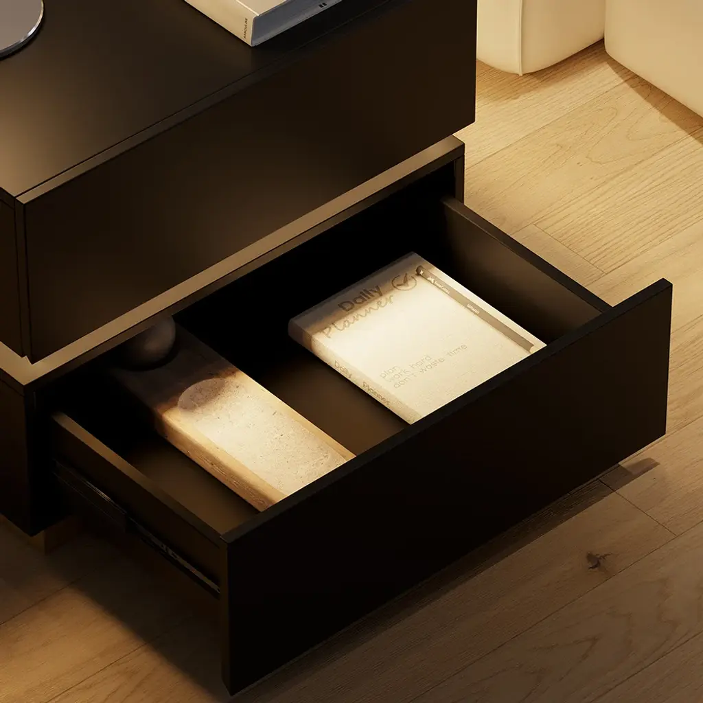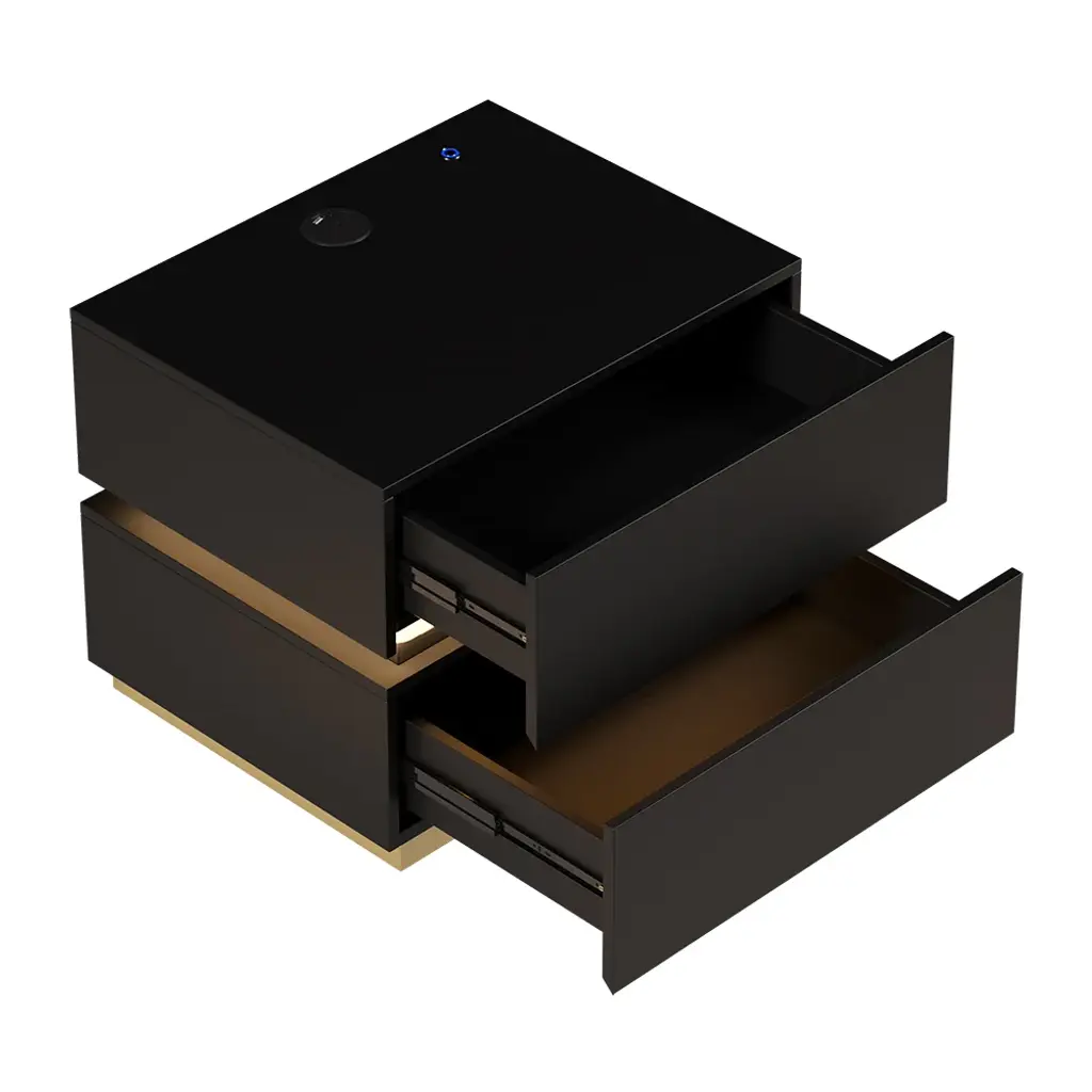 Upgrade your bedside with this modern black nightstand that combines style, storage, and smart features. With two drawers, built-in LED lighting, and an all-in-one charging station, it keeps your bedroom clutter-free and your devices powered. Compact yet functional, it’s the perfect companion for modern living.