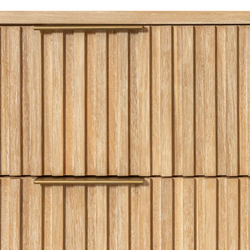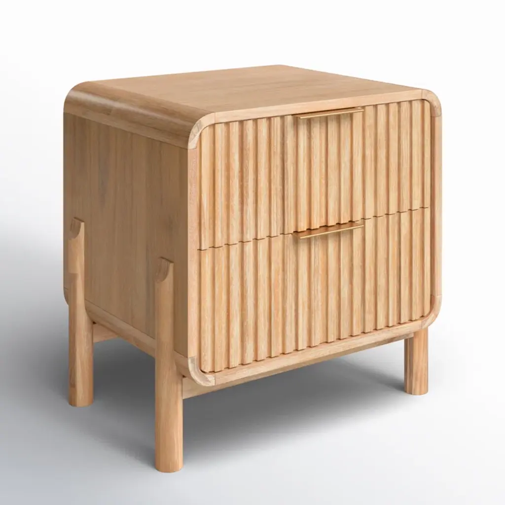 The Luthien Nightstand comes from our new Luthien Bedroom collection! This nightstand features two drawers with a soft/self-closing mechanism and an elegant golden metal handle. The Luthien is made from Acacia wood with a natural wire brush finish all over. This piece combines excellent quality material and suburb design that makes it a wonderful addition in any bedroom space. The Luthien collection also includes a Bed (available in Queen and Eastern King), chest and dresser all with the same wood finish