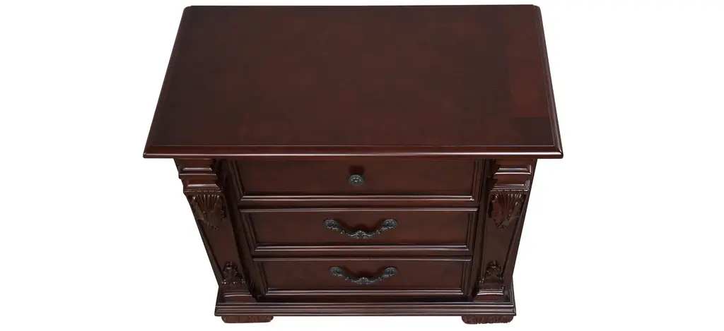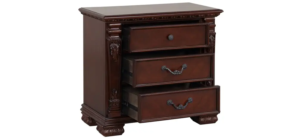 The Lyndon 2 Drawer Nightstand is finished a beautiful rich cherry. This nightstand features felt lined drawers and ball bearing drawer guides for easy use. Anti Tip anchor included.