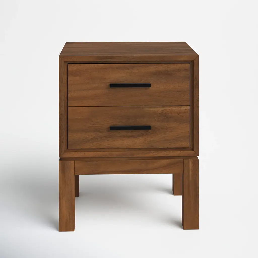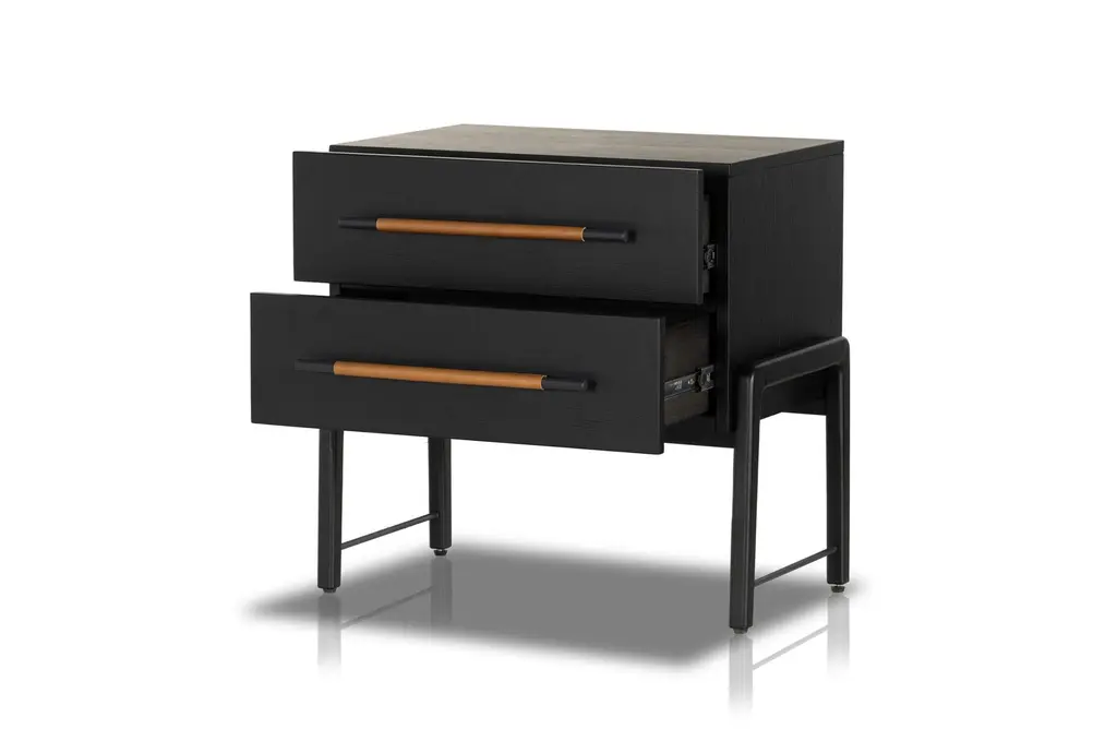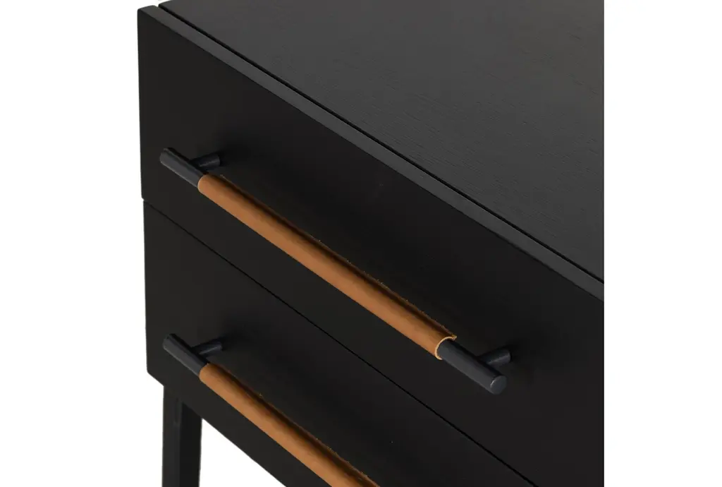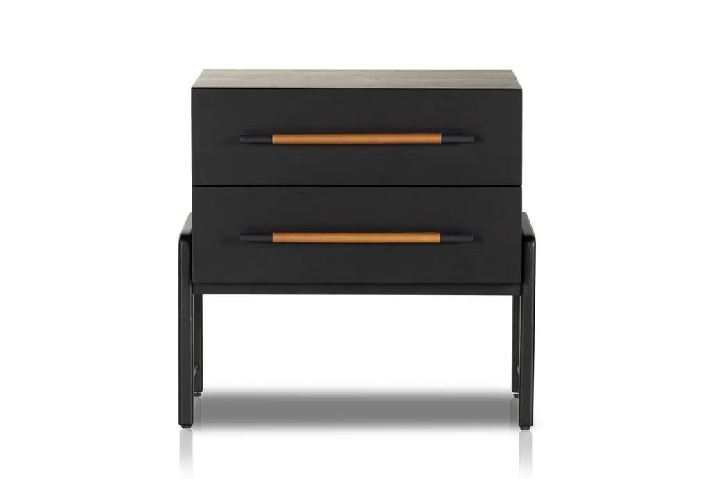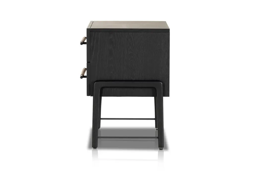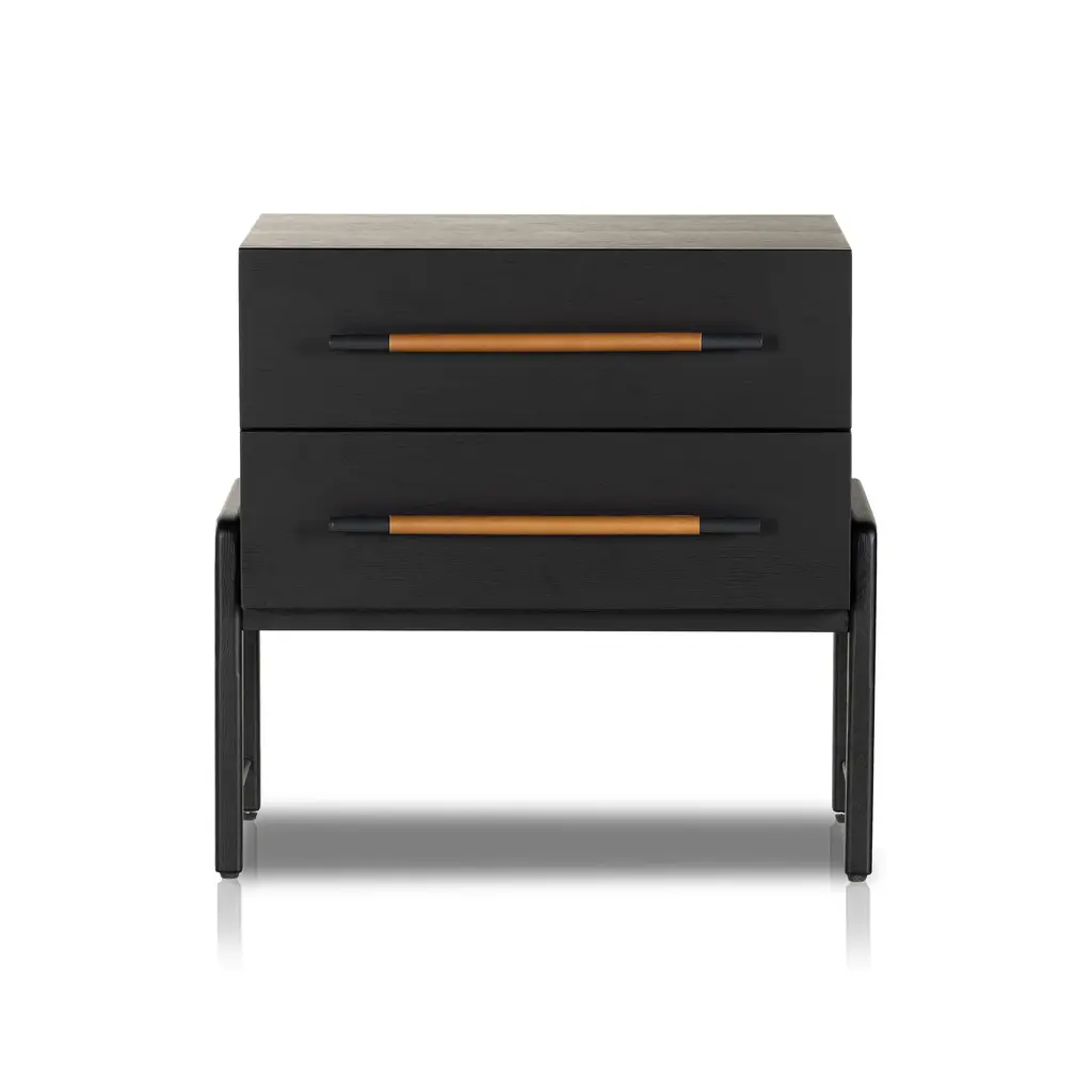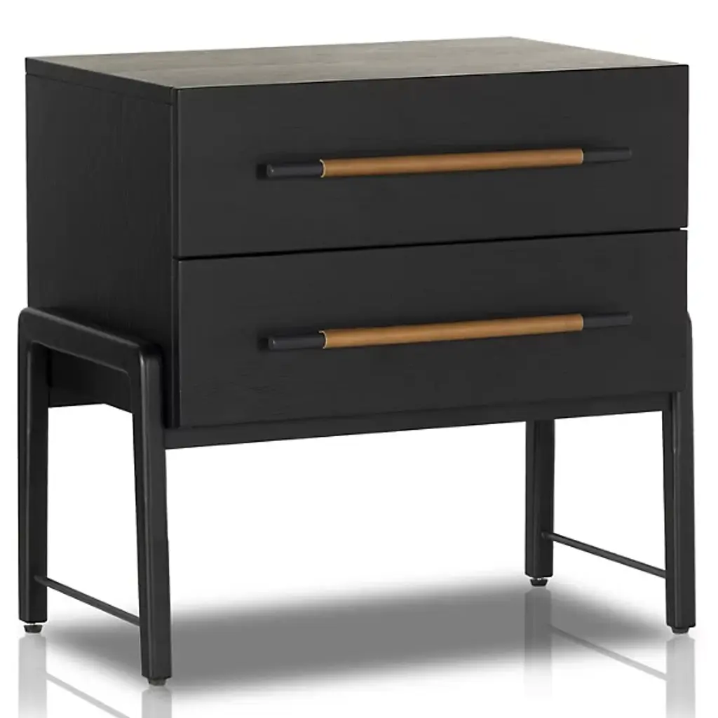 Lyra Black Wood 2-Drawer Nightstand