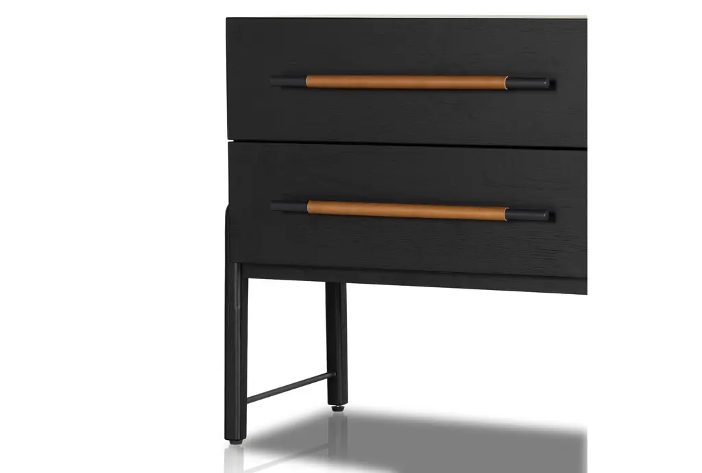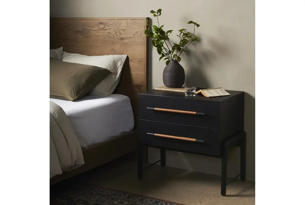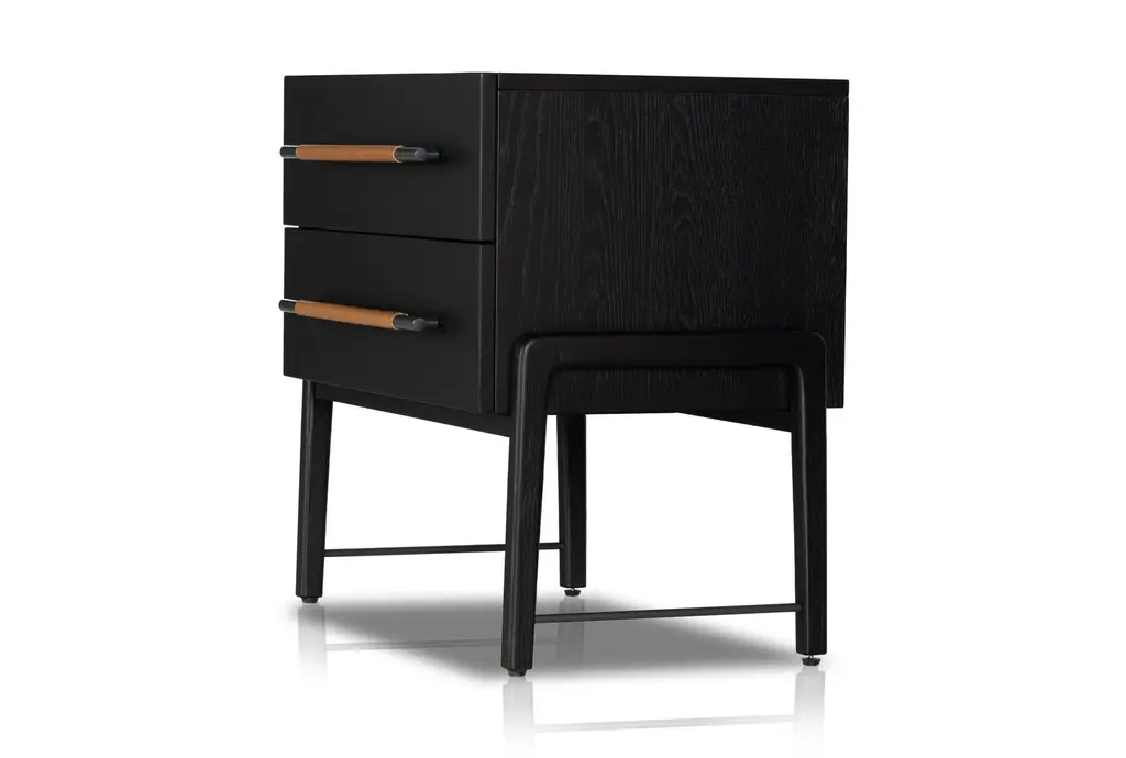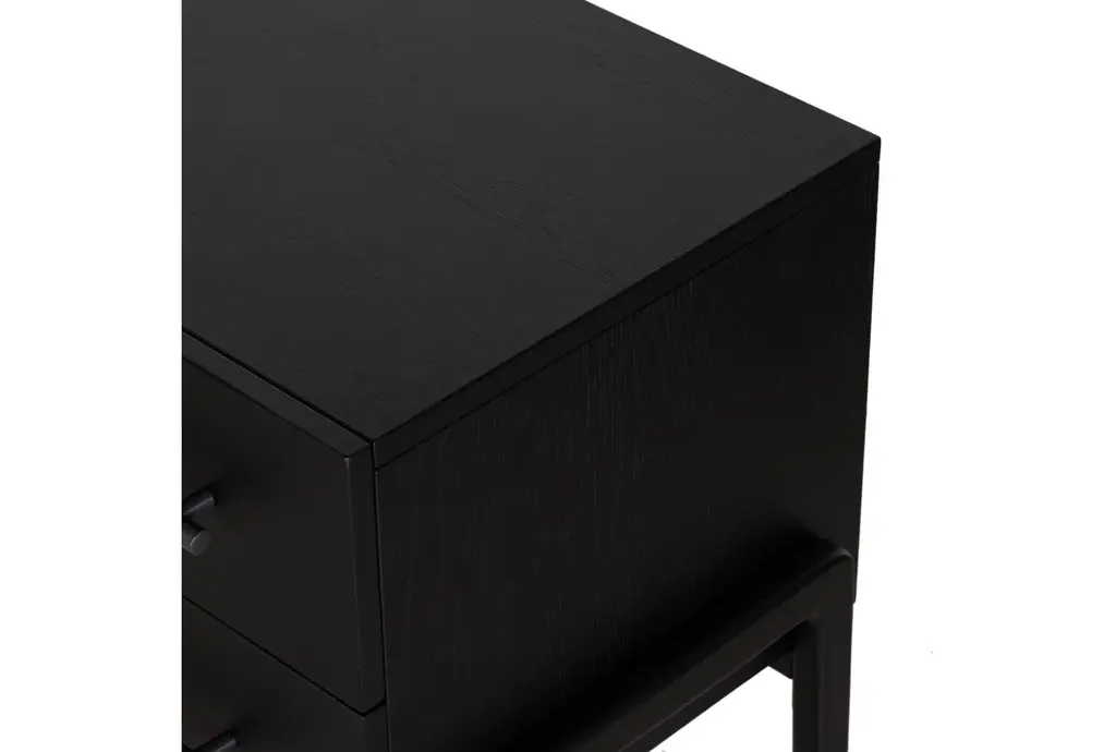 The Lyra Black 2-Drawer Nightstand is a perfect blend of modern and contemporary styles, designed to enhance your bedroom with its sleek ebony oak veneer finish. Crafted from high-quality wood, this nightstand offers both durability and elegance, making it a standout piece in any sleeping space.