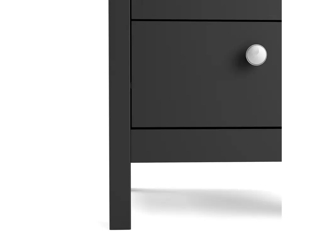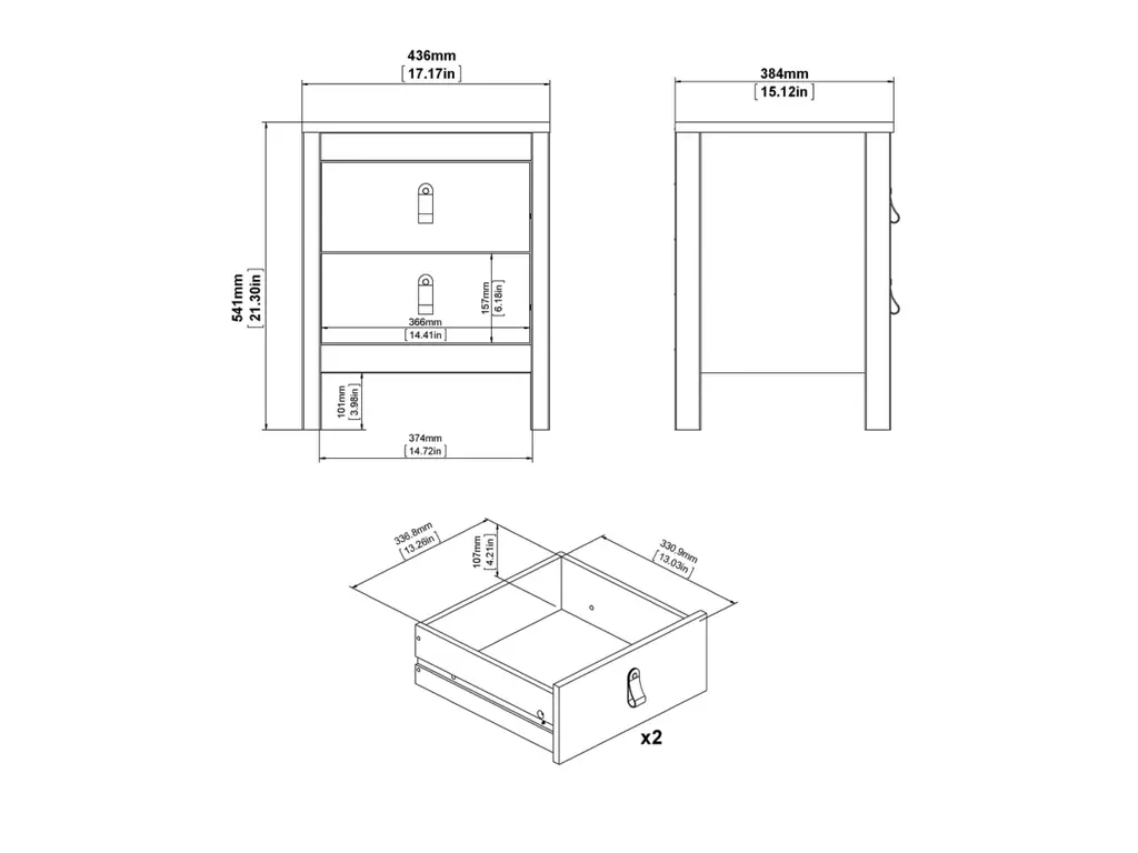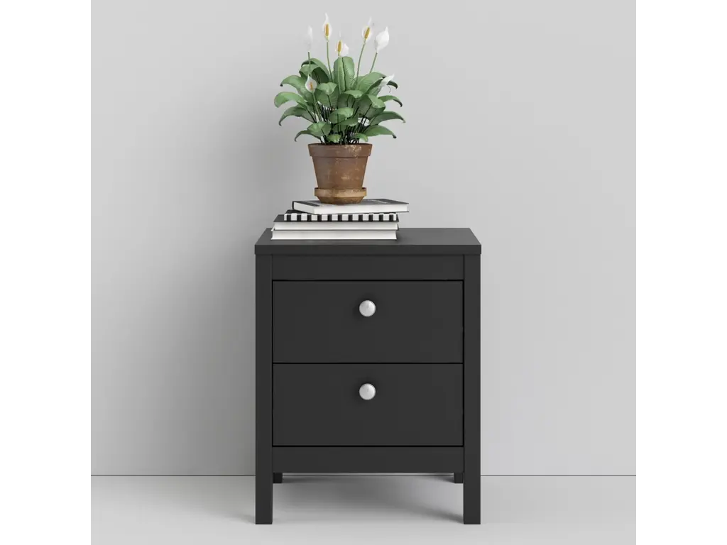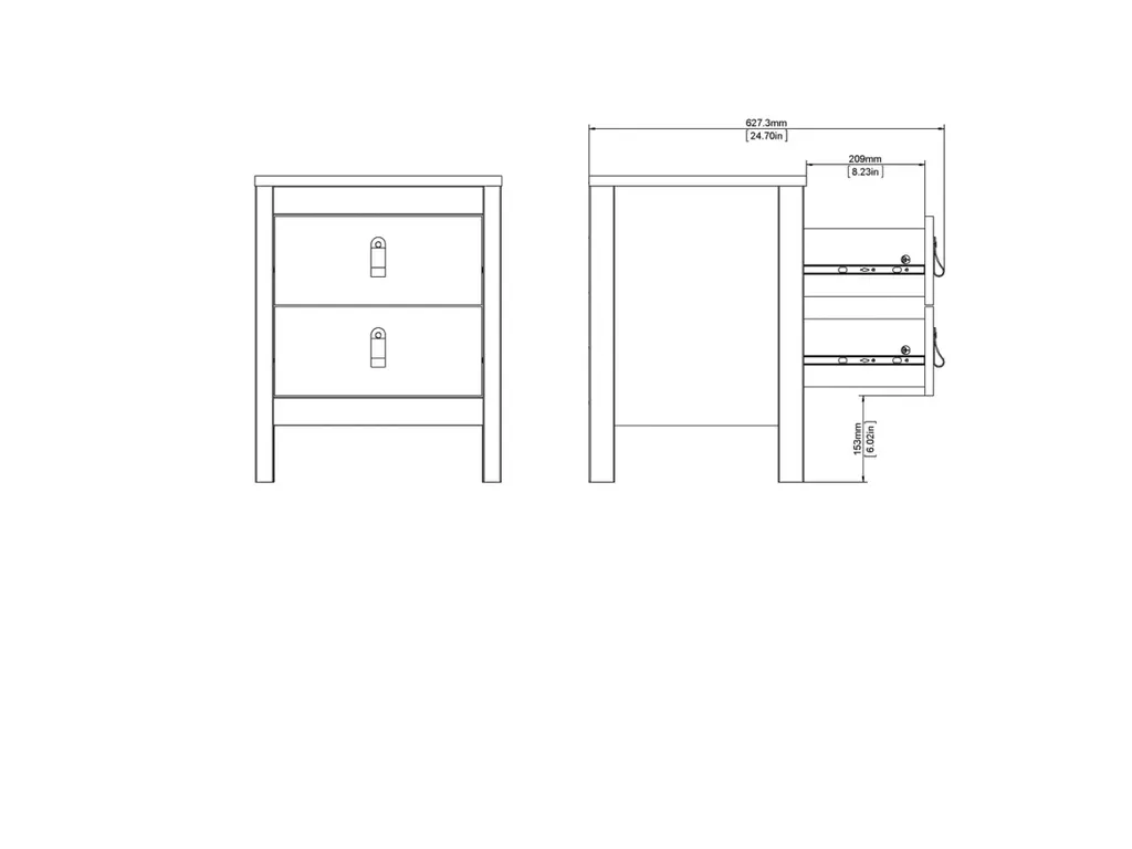 Enhance your bedroom or small space with the Madrid 2 Drawer Nightstand. It features a unique modern traditional design that’s ideal for bedside storage. The two drawers are backed with metal drawer glides and comes with two types of handles grey knobs and brown leather handles to customize the look. The Madrid Nightstand has a durable foil surface that is easy to clean. Combine with other pieces from the Madrid collection to complete your living space.