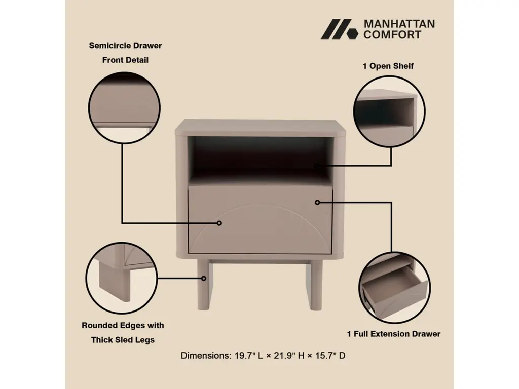 Manhattan Comfort Ella 20" 1 Drawer Nightstand (Set Of 2)