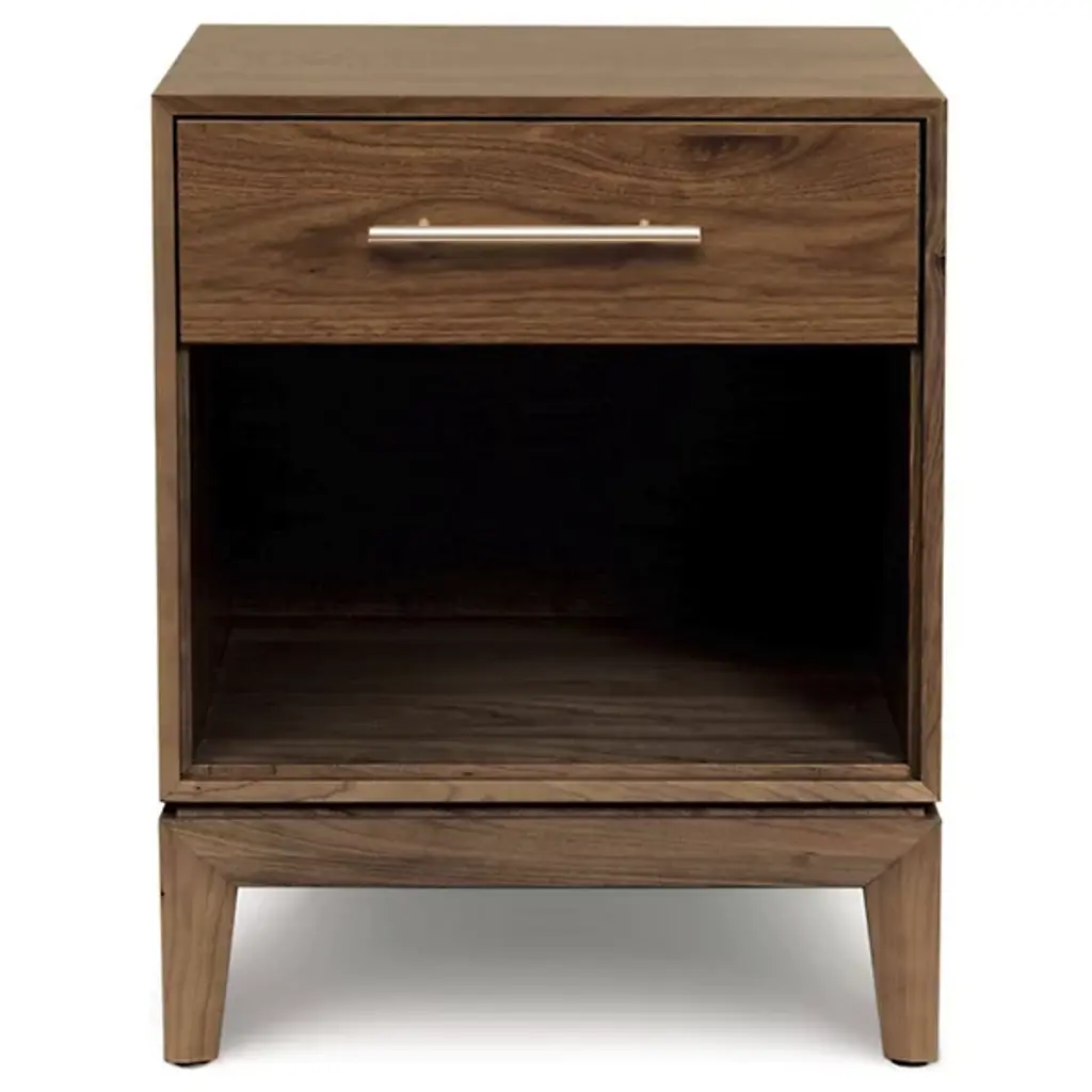A throwback to a traditional kind of beauty. The Copeland Furniture Mansfield 1 Drawer Nightstand captures the essence of vintage furniture making, with intricate detail and a strong natural aesthetic. A square, understated design leaves plenty of room for functionality, with a useful drawer and plenty of open storage space below. The drawer includes a convenient soft-closing mechanism and a simple handle that creates an exquisite, central accent. Handcrafted out of Solid Hardwood in Vermont, the nightstand exhibits the type of care and craftsmanship that keeps getting harder and harder to find. Effective and elegant, this is a piece you can use and adore for years to come.