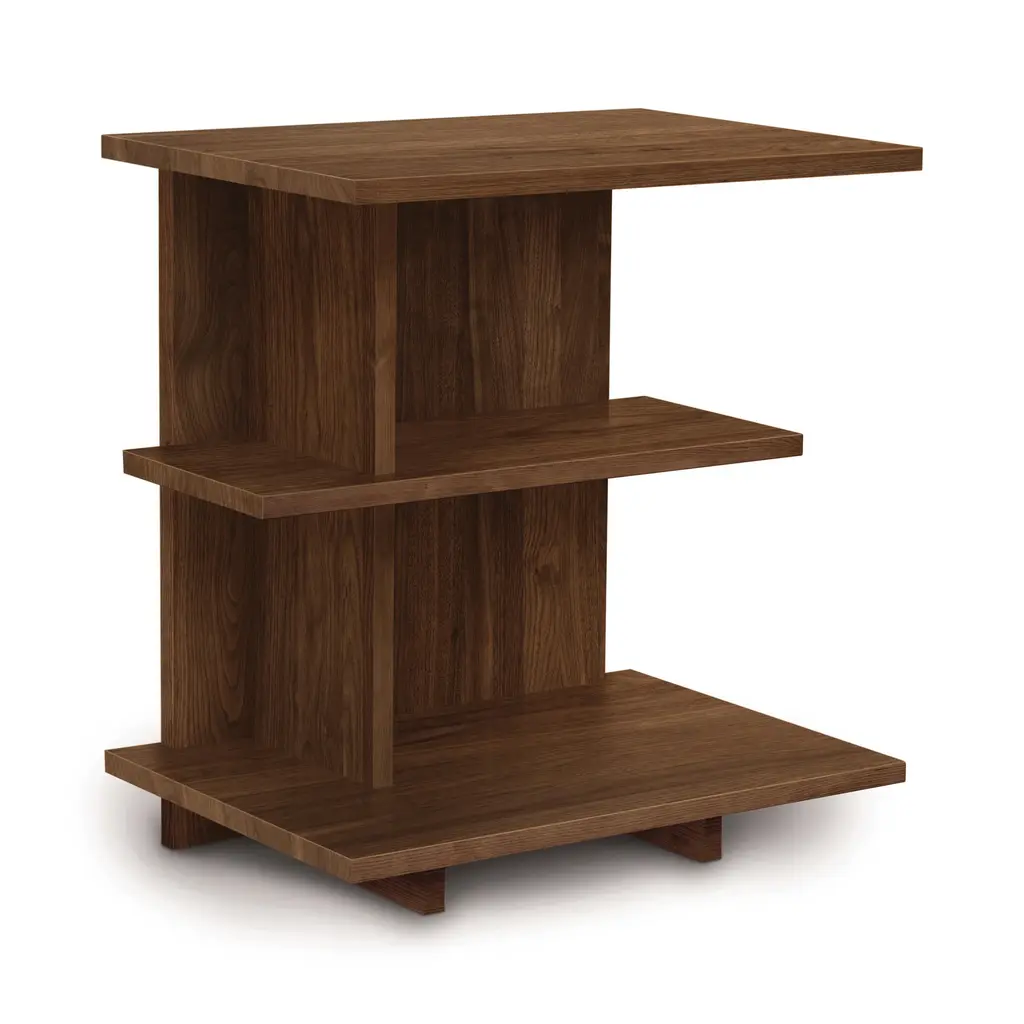 Your new solid wood bedside storage design Complete the look of your master suite or guest bedroom with the Mansfield Nightstand from Copeland Furniture. Designed for use with a 49-inch tall bed, this nightstand is made from solid wood and hand-applied cherry finishes allowing for a rich outward appearance. This modern bedside table is made with multiple coats of silky smooth varnish, helping to make this table resistant to scratches and stains. Situate this wooden nightstand next to your favorite bed and sleep soundly with all of your must-haves within reach. Why We Love It: Features