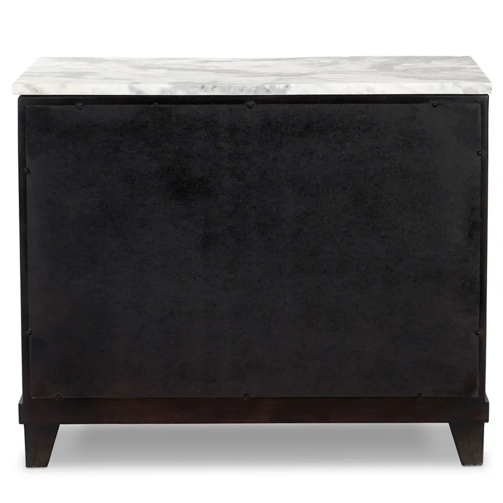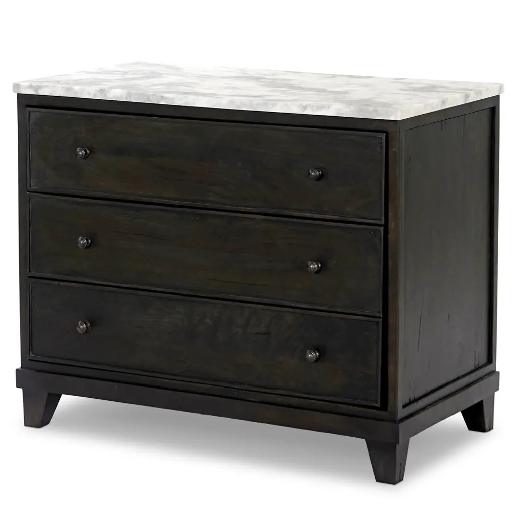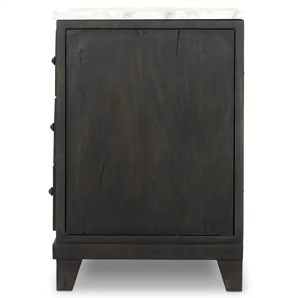 Marion Updated Traditional White Marble Dark Reclaimed Wood Wide Nightstand