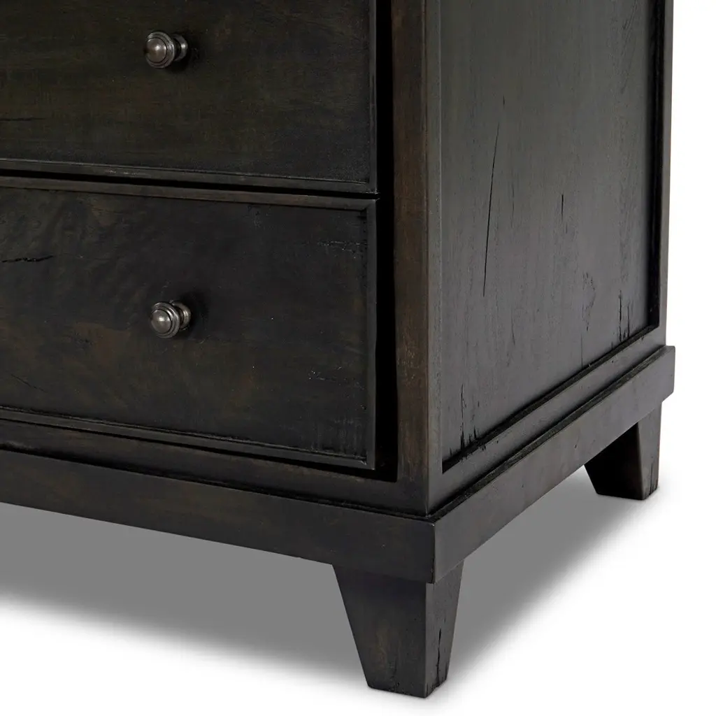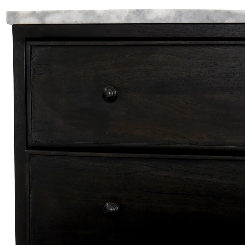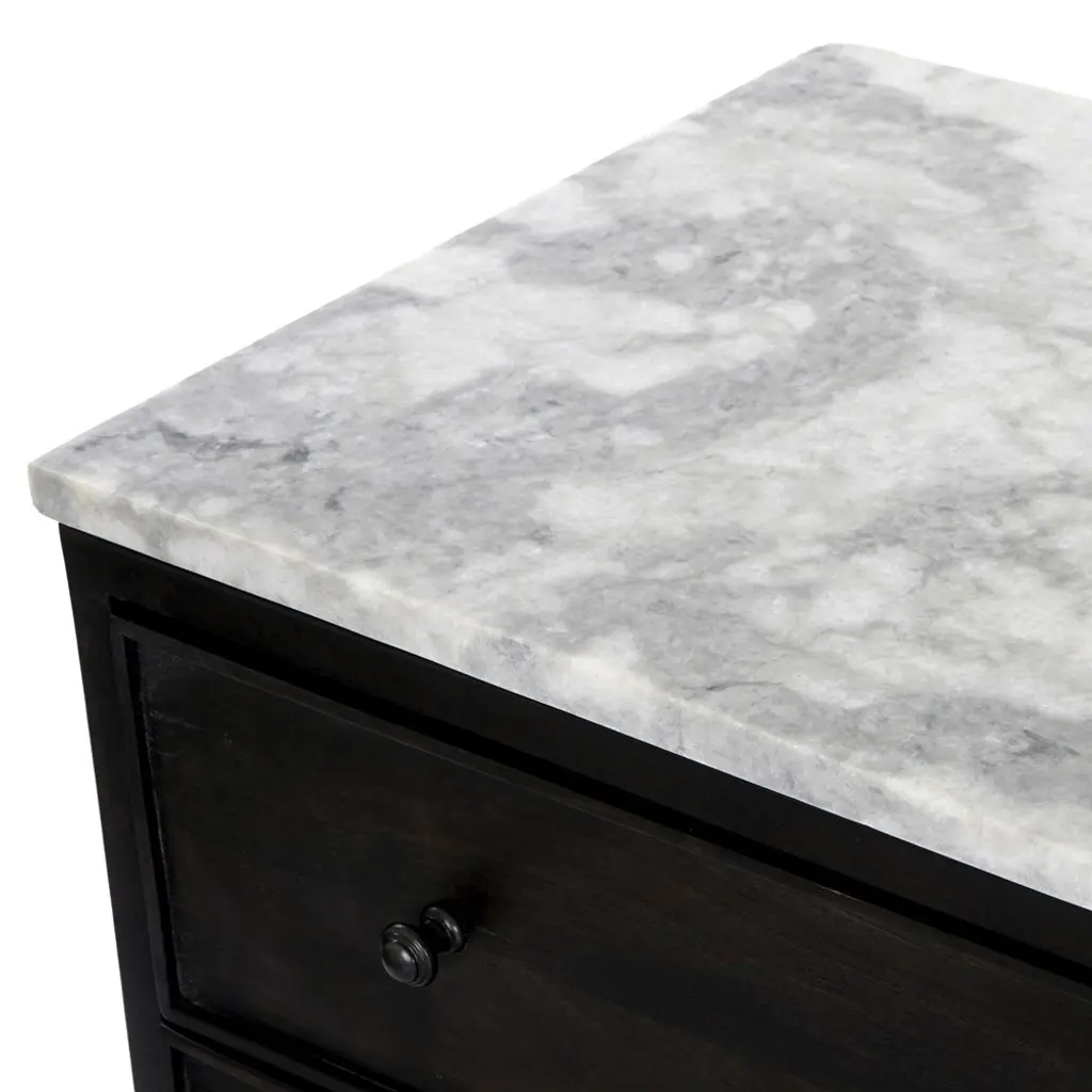 Marion Updated Traditional White Marble Dark Reclaimed Wood Wide Nightstand