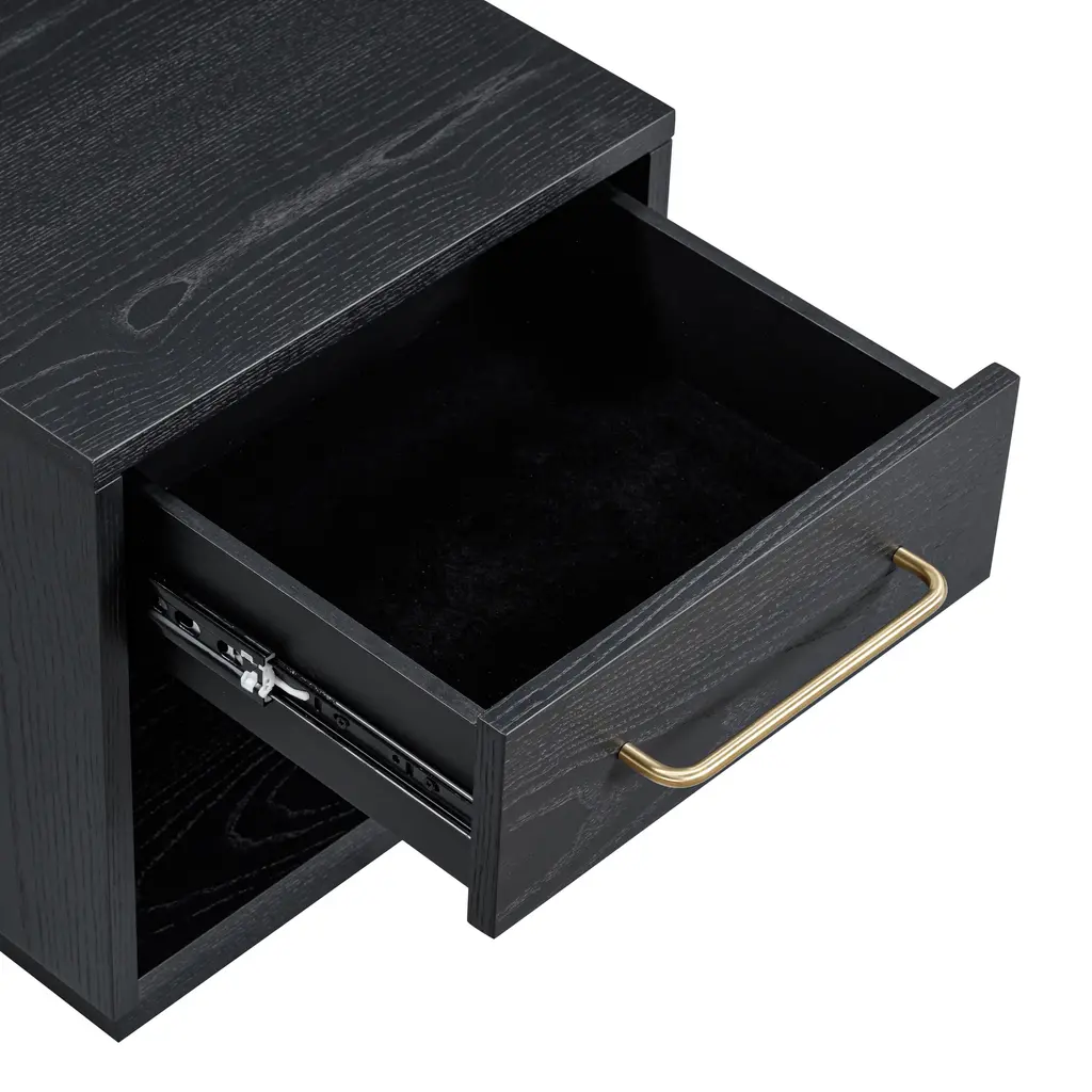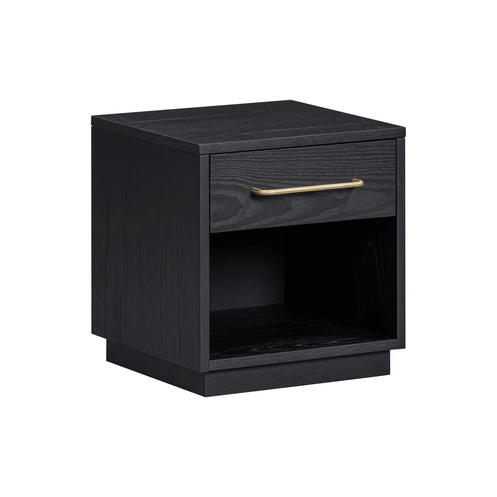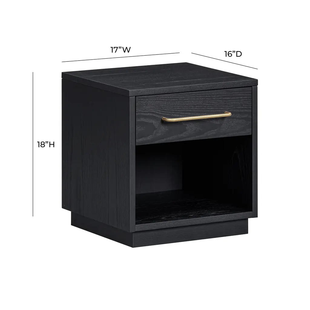 Elevate your bedroom with the Marlow Nightstand, a perfect blend of style and function. Crafted with a sleek, natural wood finish, this nightstand exudes warmth and timeless elegance. The single drawer, adorned with nickel hardware, offers a discreet storage solution, while the open space below provides easy access to your favorite books or decorative pieces. For a bolder look, the Marlow Nightstand is also available in a sophisticated black finish, complemented by brass hardware, adding a touch of modern luxury to any space.
