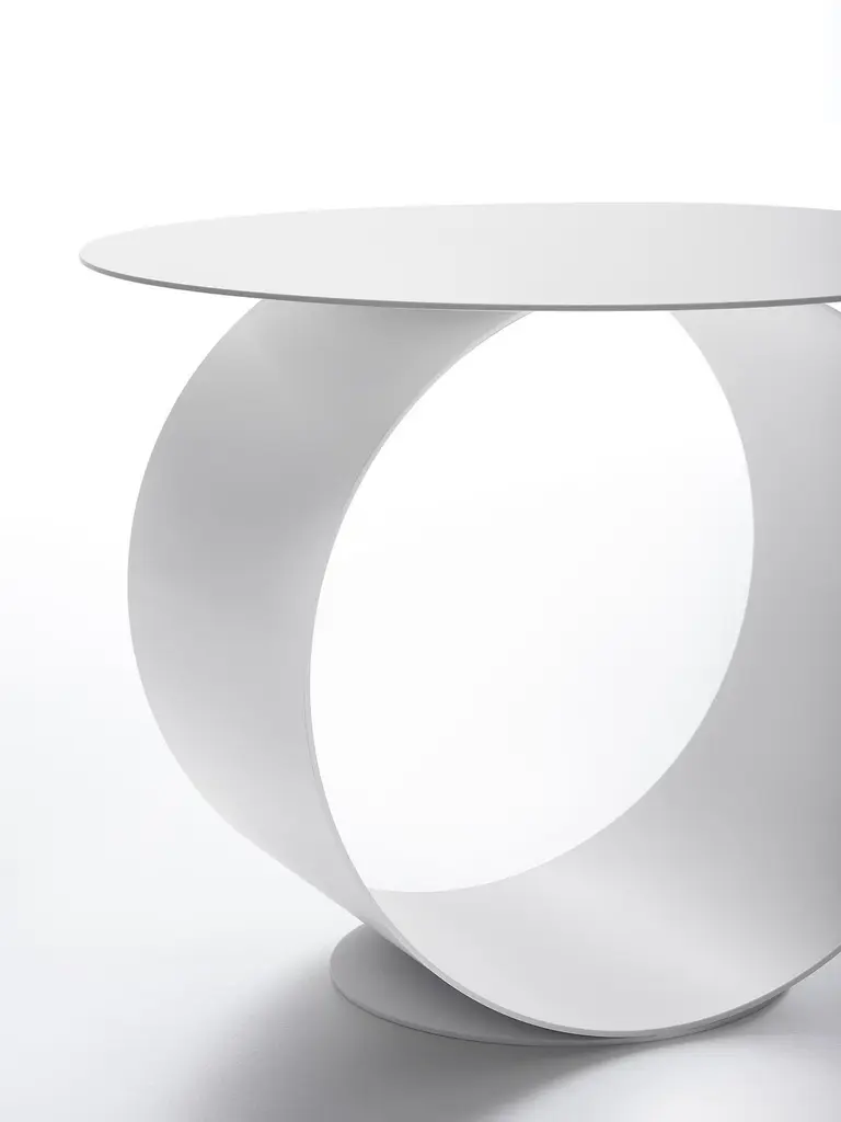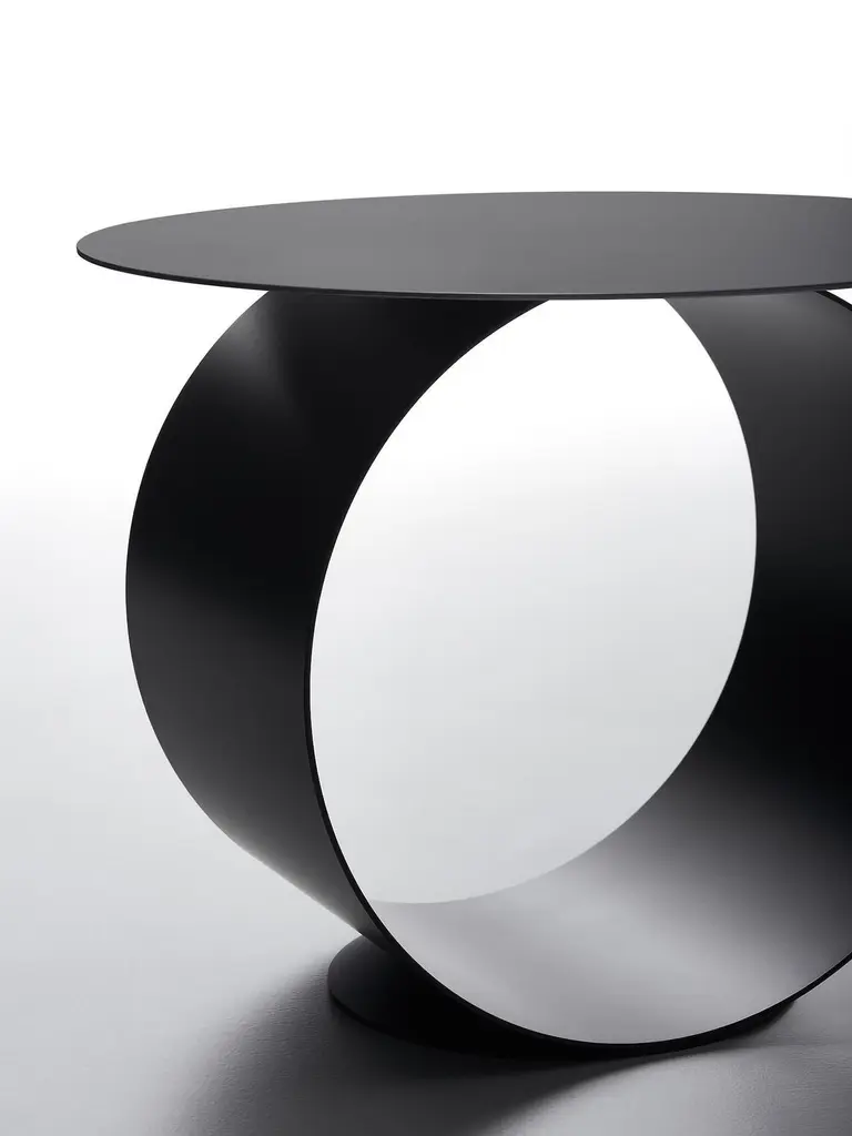 METODO, A NEW CONCEPT OF COFFEE-TABLEA pure and rigorous design, featuring clear and precise, yet highly original lines: the brand new Metodo coffee table immediately catches the eye.It was designed for MDF Italia by Leonardo Talarico, talented designer renowned for his strict excess reduction and his search for essentiality in objects and furnishings design. Conceived according to a rigorous stylistic pattern, Metodo develops its shape in the space by means of circles that, placed on different levels, meet to create both the top and the entire structure.The result is a simple product, but unforgettable, essential, but with a strong personality. Metodo, perfectly fits into many residential spaces: from the living area next to the sofas, up to the night area, as an ultra-contemporary bedside table. With its silhouette.Structure3 mm thick steel structure, powder coated in matt white, mattblack nickel and matt shadow grey colour.Dimensions and types:• large version: top diameter 50 cm, height 40 cm• small version: top diameter 40 cm, height 30 cmFinishesS007 matt painted white X053S069 matt painted black nickel X101S089 matt painted shadow grey X122