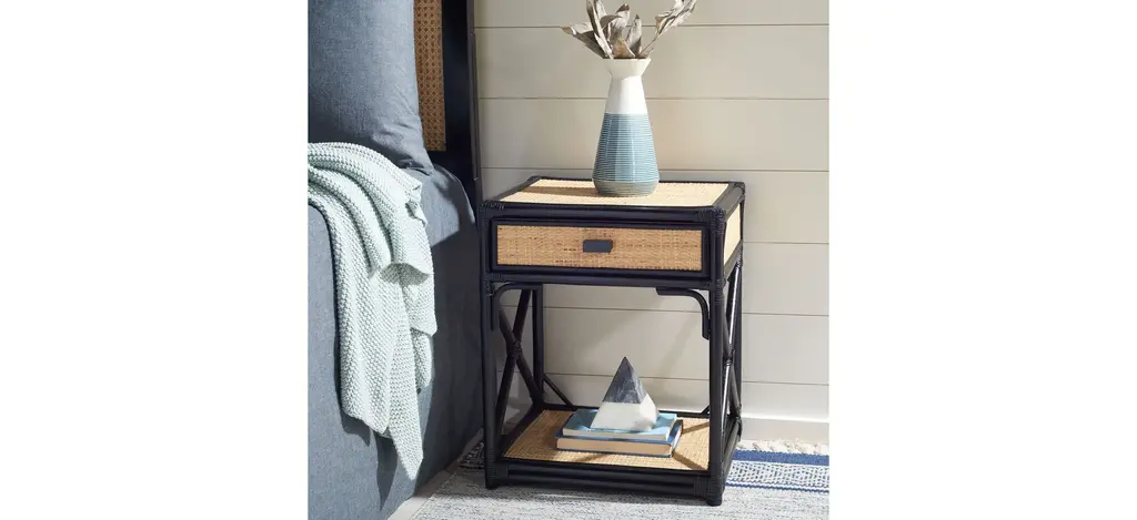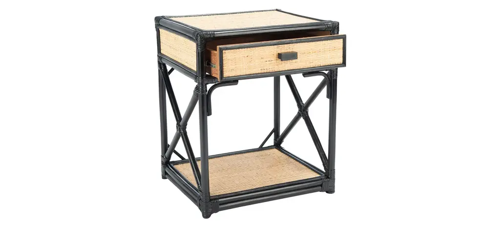 You can almost feel the warm ocean breeze that inspired the airy look and feel of the Meilana Nightstand. Crafted of mahogany in rich black accents, Meilana brings a relaxing vibe while offering convenient shelf and drawer for easy access storage. Vacation home not included.