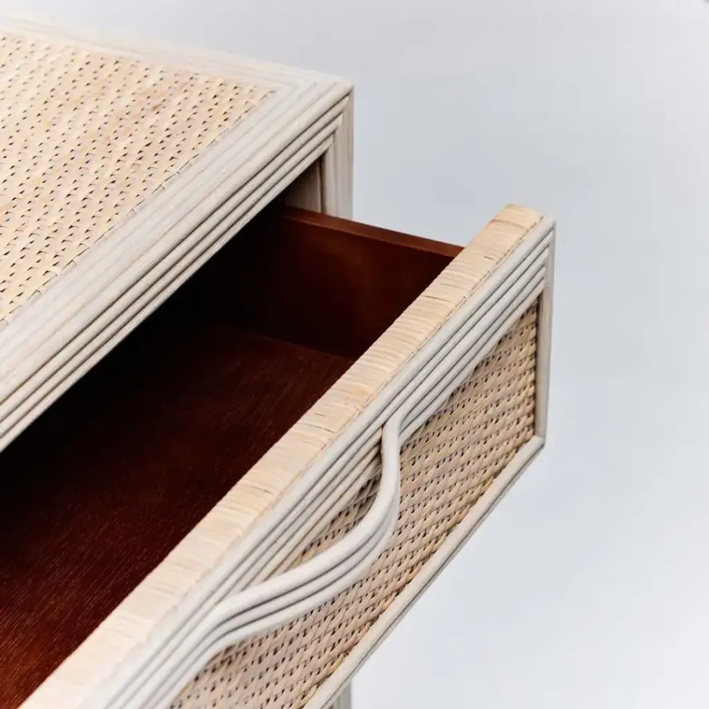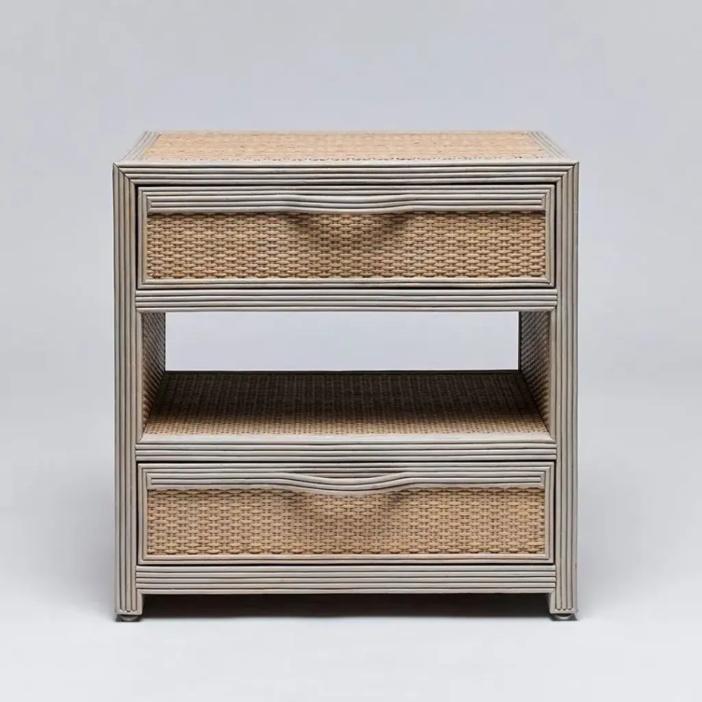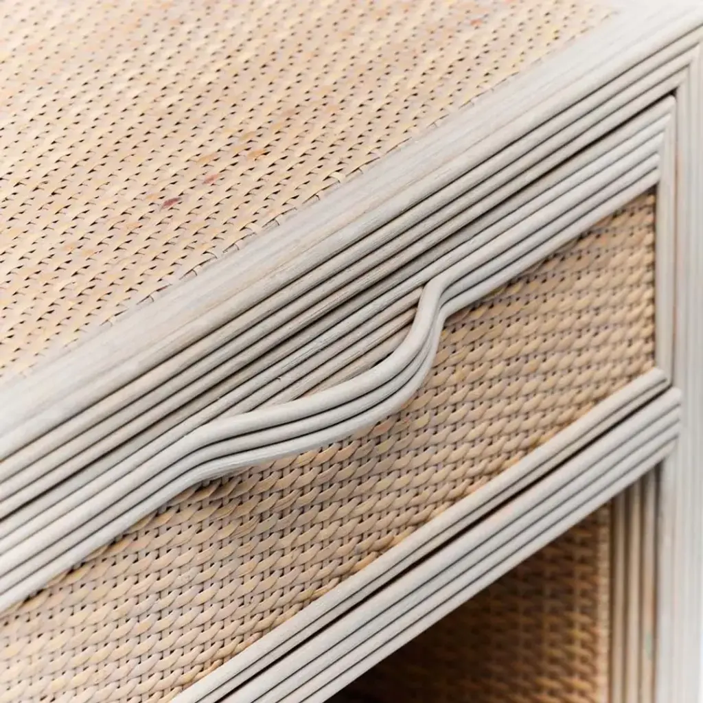 Easy, breezy and so versatile, the rattan Melbourne Bedside Chest in a grey wash adds fabulous organic texture to any space.