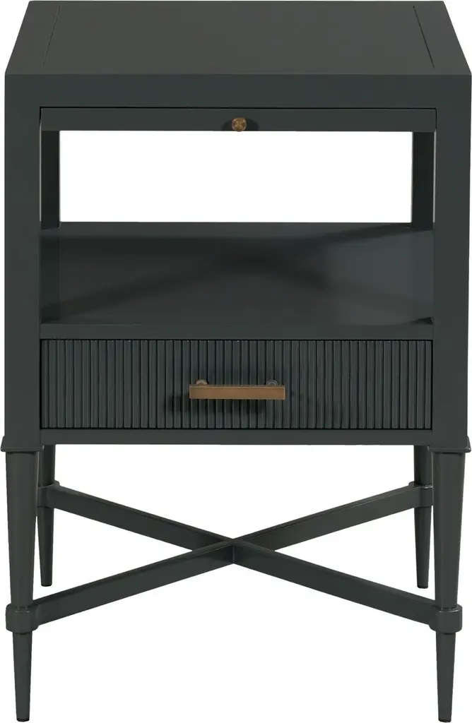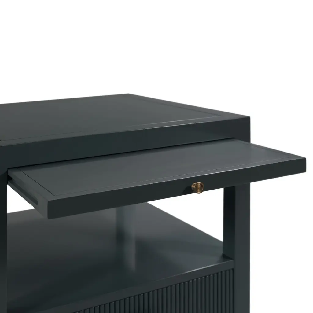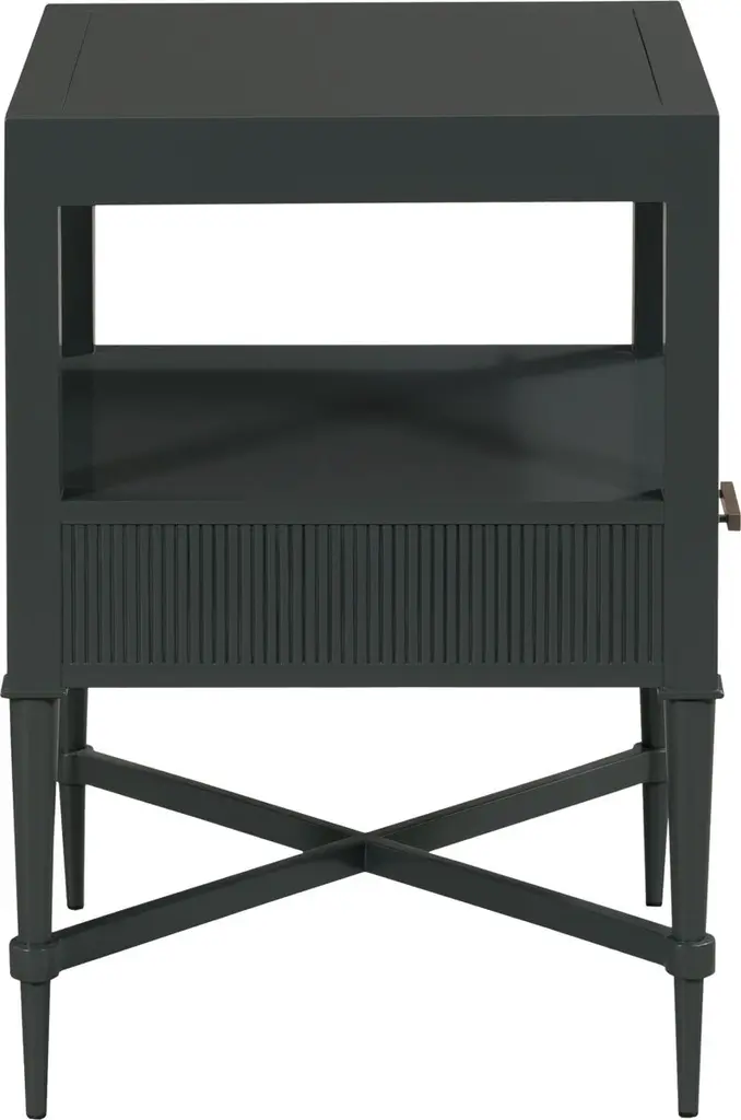 Whether you use it as a nightstand or a side table, this piece will bring time-honored finesse to a room. The smooth black finish accentuates details such as the reeded drawer front and sides. In addition to a drawer and a shelf, the table has a pull-out surface that you can use as a writing desk or for extra display space.