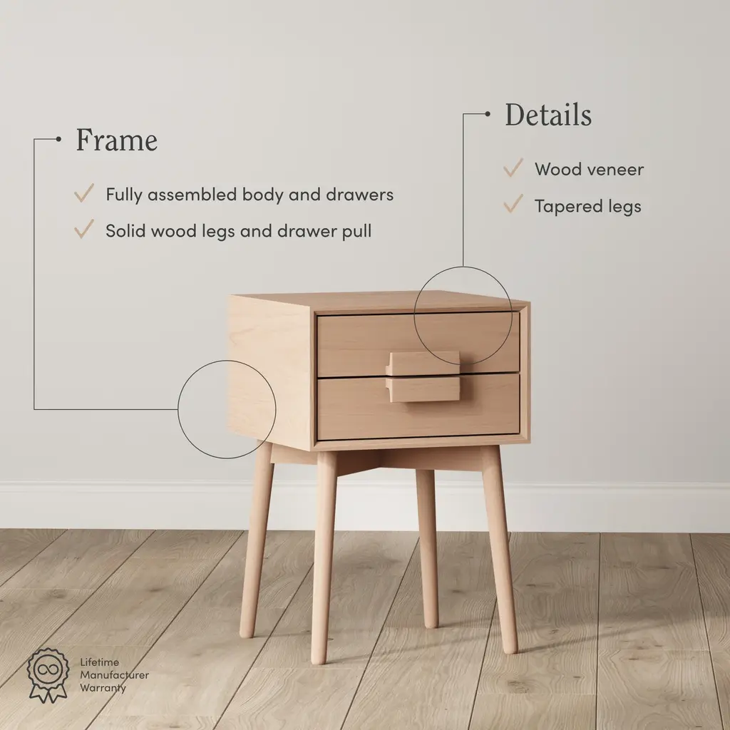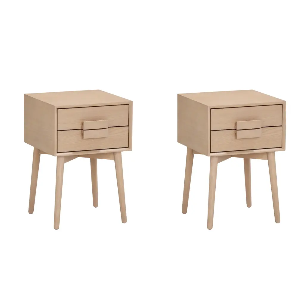 Mid-Century Wood Handle Nightstand Raw Oak (Set Of 2)