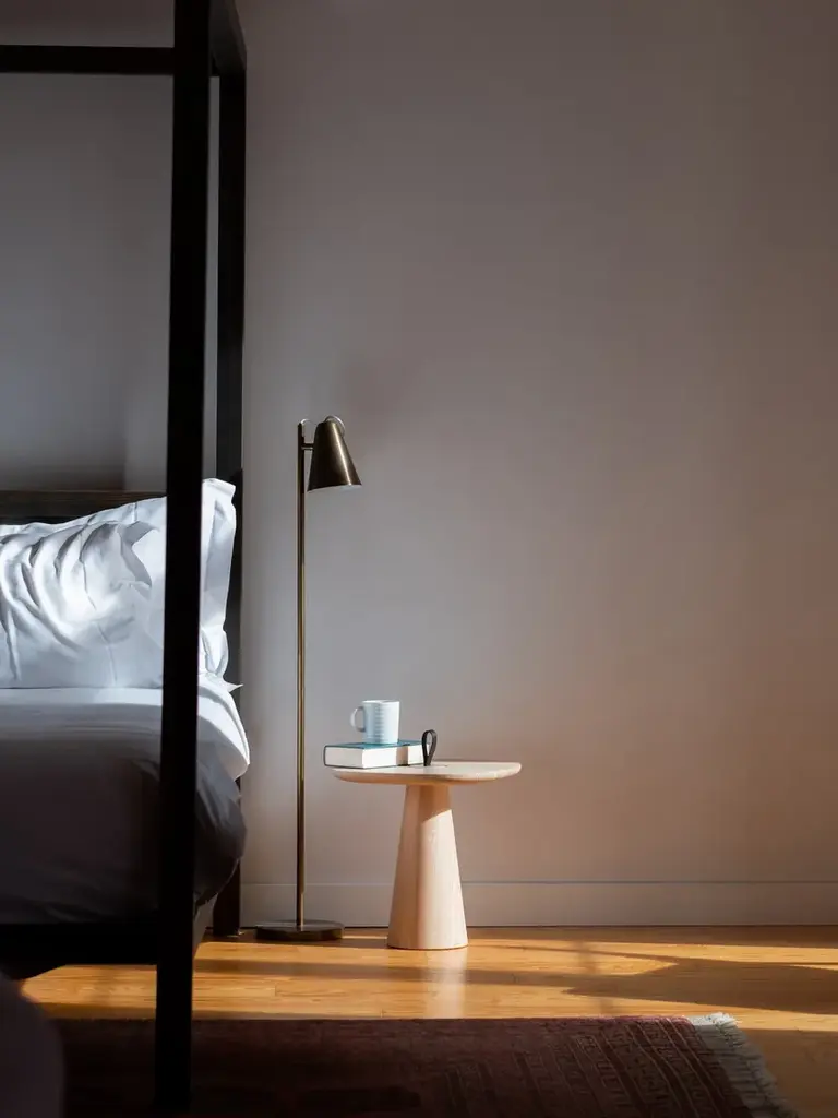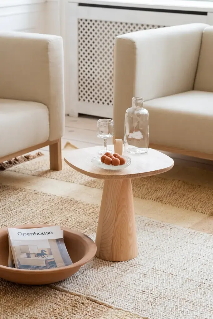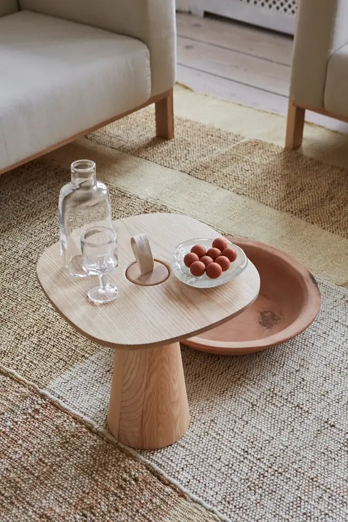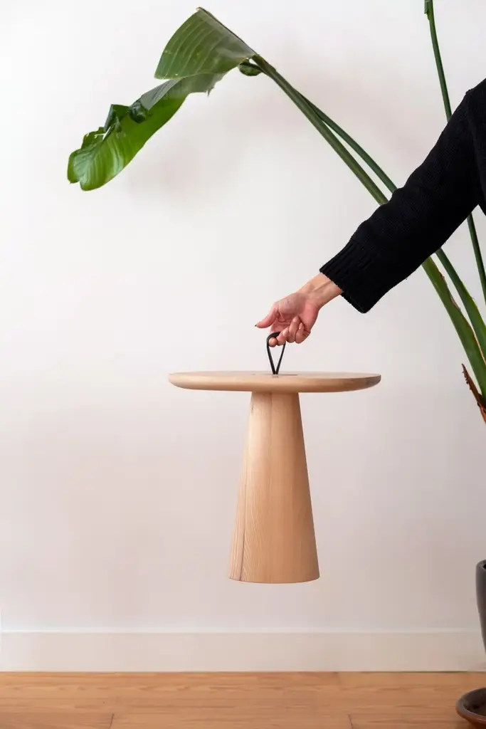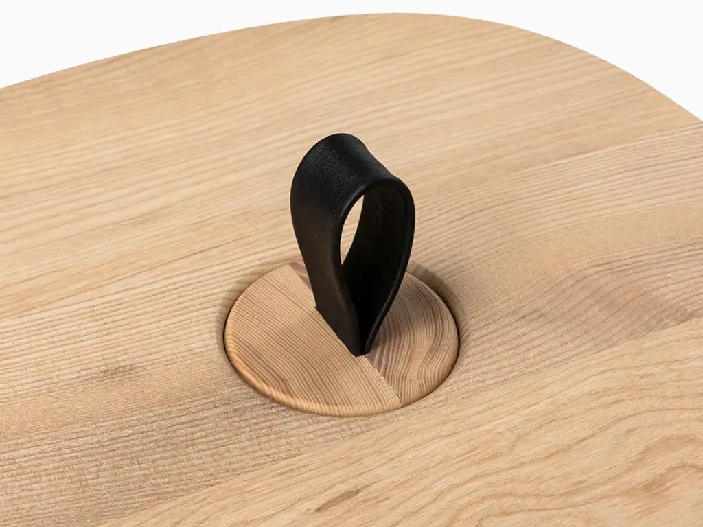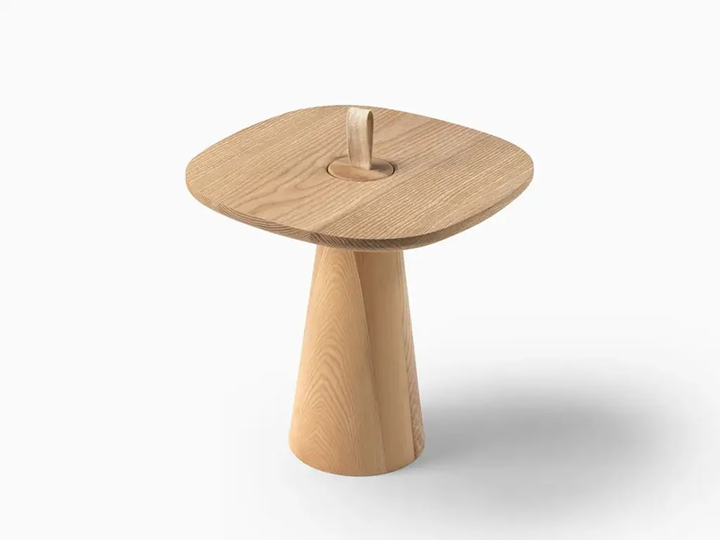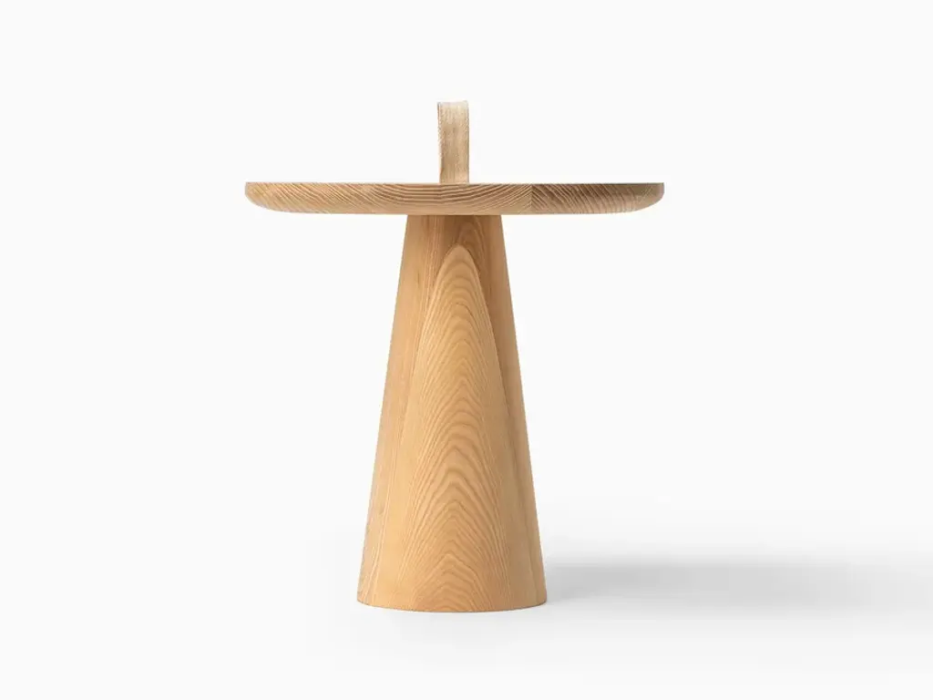 Migo is crafted from solid ash wood, this side table features a gently rounded top paired with a tapered base. A practical strap handle—made from natural cotton (or leather) allows easy repositioning. Finished with a matte protective varnish, the piece balances minimal form with everyday functionality. Made in Portugal, it suits living rooms, bedrooms or casual hospitality settings.Minimal in its components, MIGO table consists of two parts: a table top, and a conical shaped base, whose top ends with a strap for it to be lifted by.The soft and friendly shape of the top makes the table suitable for different situations, and supports the versatility and practicality it aims to fulfil. That may be a bedside table for a book, space for cups and small plates for an afternoon with friends, a place for a coffee and some cake, or for a child using the living room as a playground.The name “MIGO” is an abbreviation of “amigo” commonly used to call a friend in Portugal, where MOR is based.Available in 3 variants:ash, oak and walnut;and with 2 handle variants:Natural cotton and Black leather