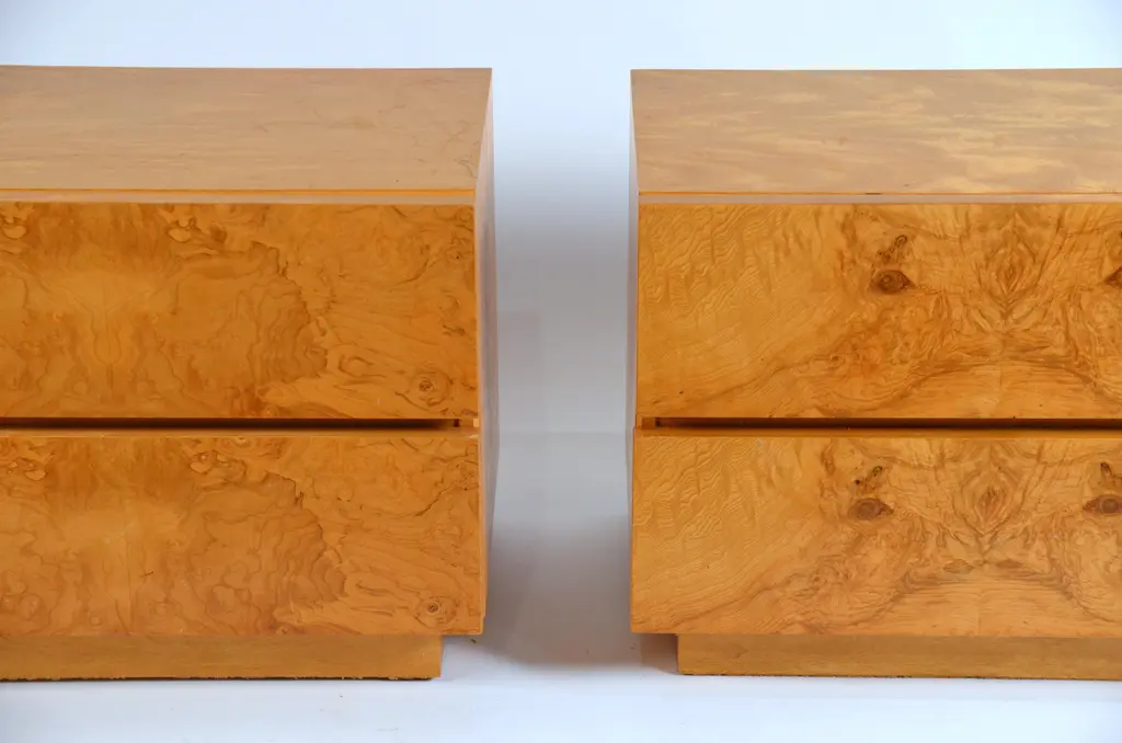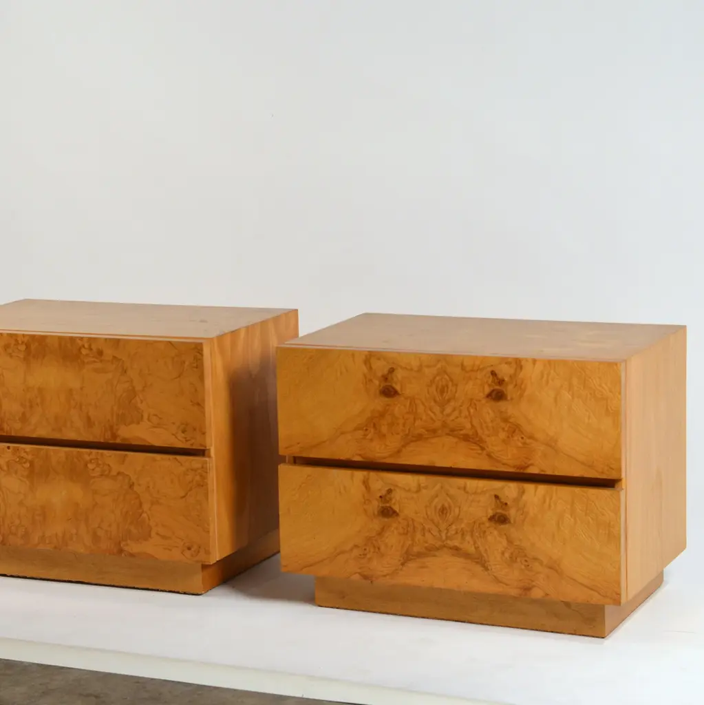 Minimalist 'Amboine' Burl Wood Nightstands By Design Frères - A Pair