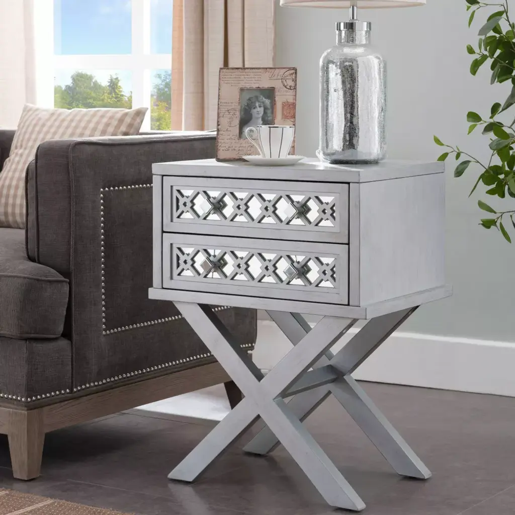 Mirrored Diamond Filigree X Base Nightstand/table Silver Leaf - Leick Home: Solid Wood, 28" Height, 2 Drawers