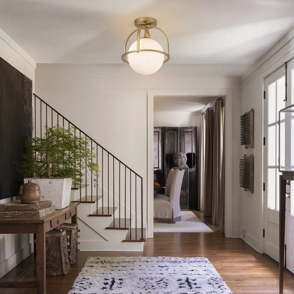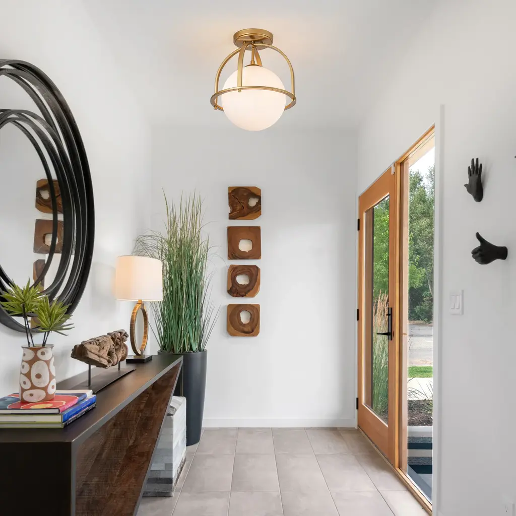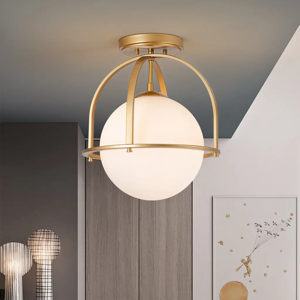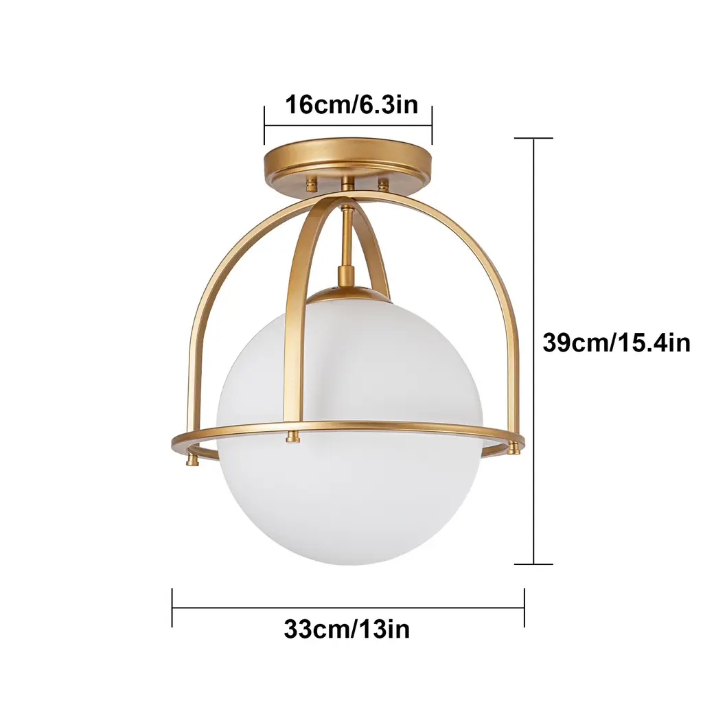 Modern 1 - Light Globe Semi Flush Mount Light For Hallway - 13-In W - Gold