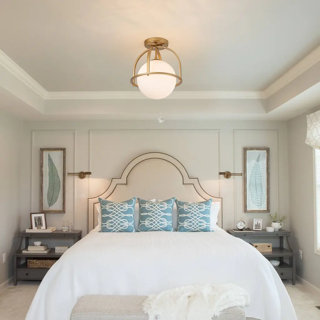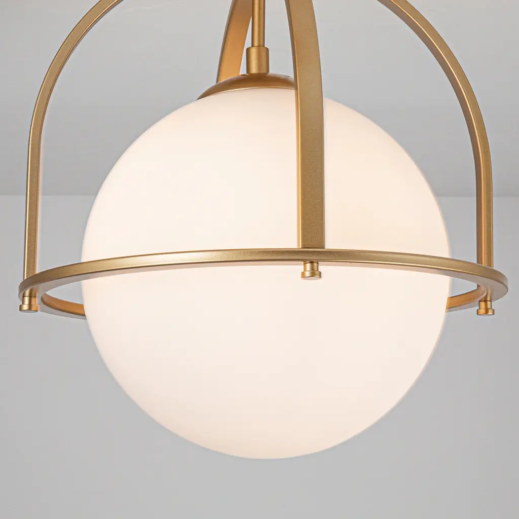 This modern semi-flush mount ceiling light possesses a globe shape accented with a stylish black and gold finish. It may be a bit small for any large space like a long dining table or kitchen island if use 1 light. It is more suitable for hanging multiple, this ceiling light helps to save and to brighten the space. Or Hang single in the bedside, hallway, or rest area. With opaque white cover, creates a warm ambiance, and this ceiling lighting fits most the home style.Features:Specifications: