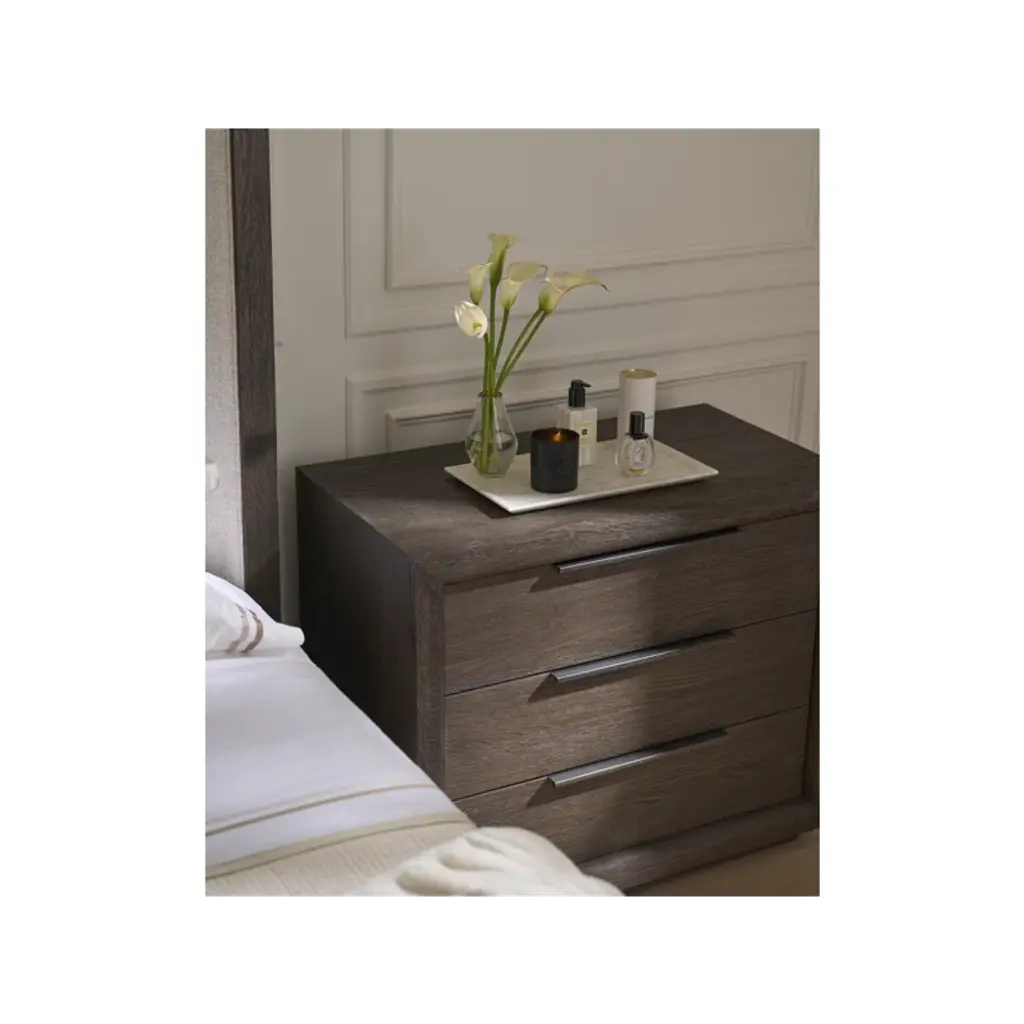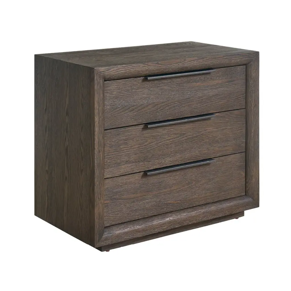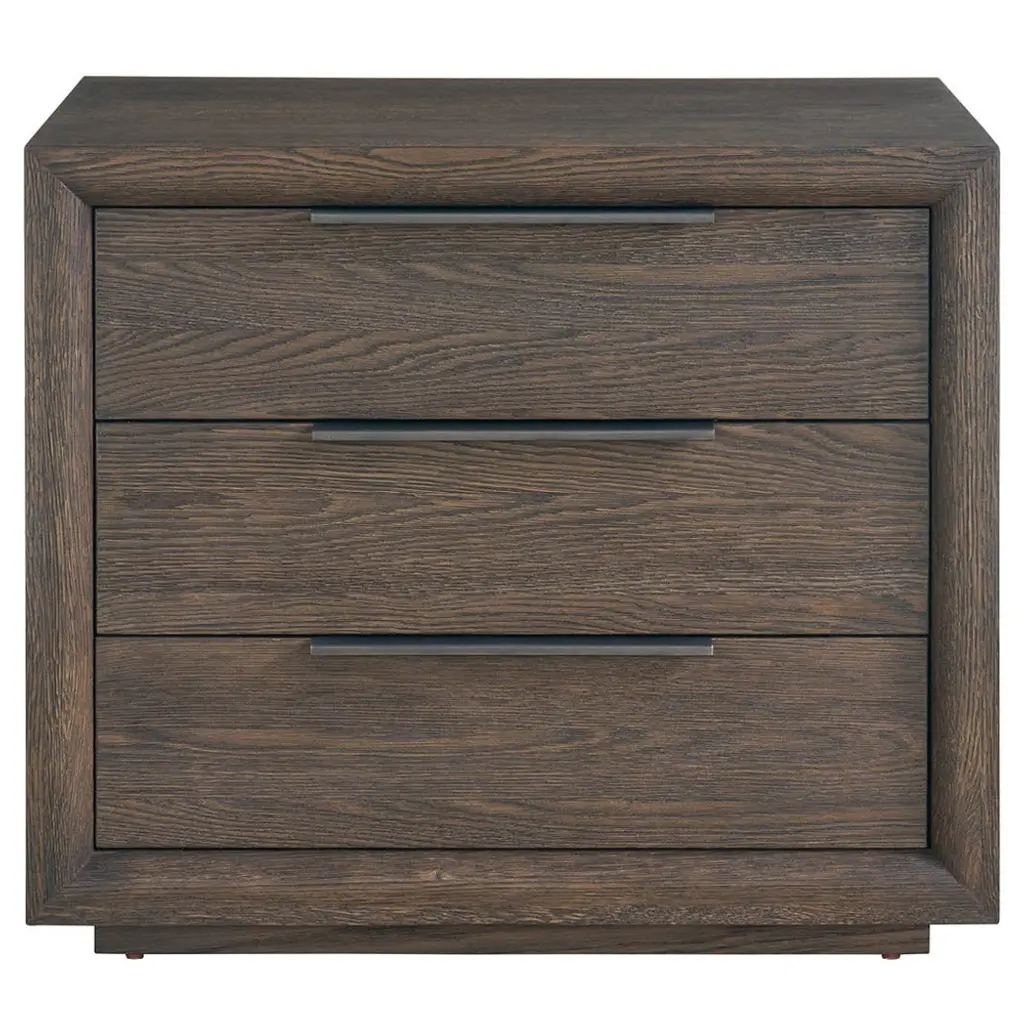 Featuring three drawers, the Desert Plinth Nightstand offers bedside functionality with a bold, modern edge. Its finish complements the clean lines and sleek hardware, providing a sophisticated and practical addition to your sleep sanctuary.