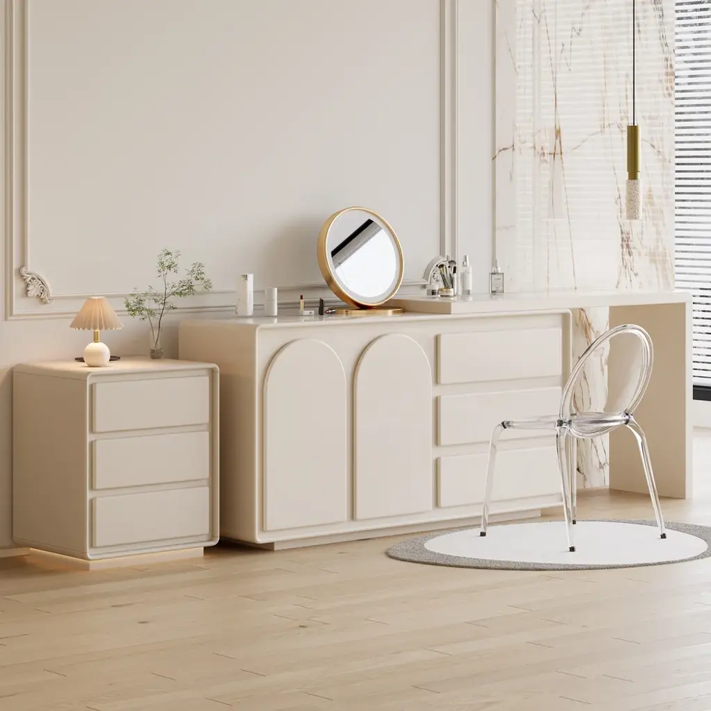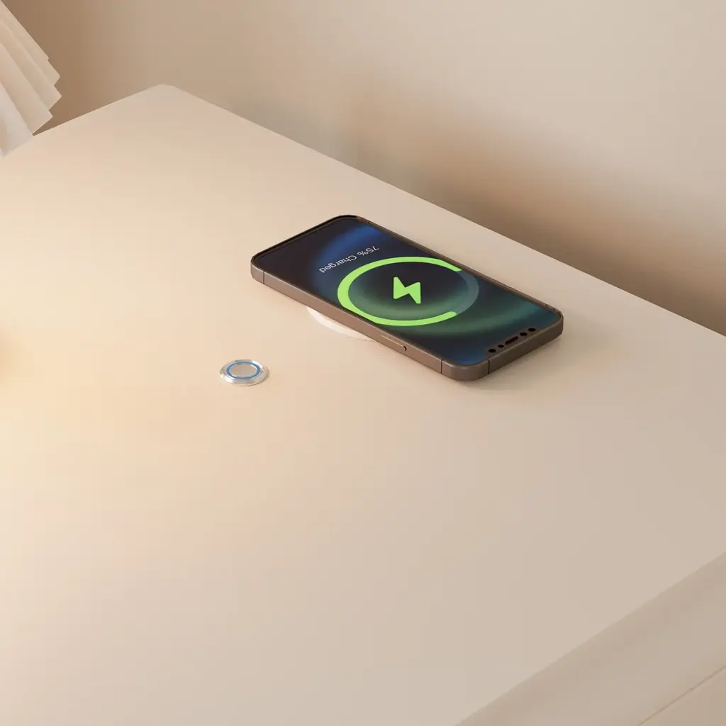 Homary presents the modern smart LED nightstand, with its contemporary design and inbuilt wireless charging station to enliven any bedroom decor. Incorporating adjustable ambient lighting for functional illumination and cozy atmosphere in your bedrooms or guest rooms.
