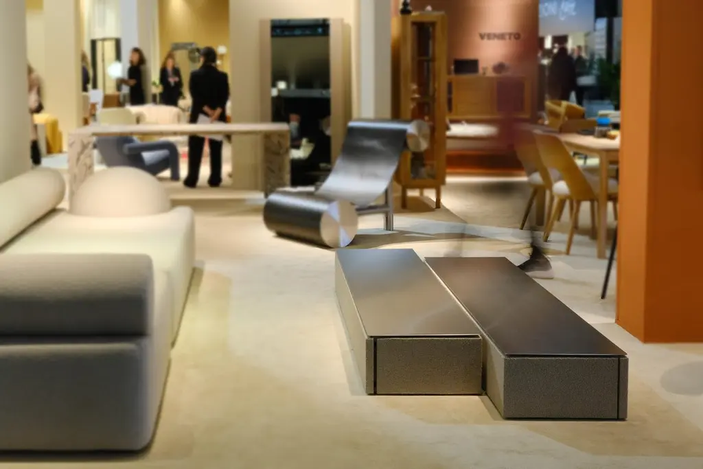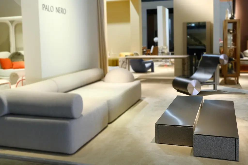 The Echo low table is a modern interpretation of storage. These cabinets were created by Alexander Babenko and were first seen at iSaloni 2025 in Milan. The collection is called Electricians, a reference to the Philip K. Dick novel that was the basis of the movie Blade Runner- "I imagined the interior of the early 70s, which should be organic in the future, in our present. Withhumanoid androids and flying cars" The construction is sheathed in boucle, which refers us back to the 70s and 80s, when it was popular and stainless steel on top gives brutality and shows character. The combination of materials looks very organic and cozy. It can be used as a classic bedside table near the bed, or a bedside table that is placed under the TV or near the sofa. In addition, there is storage in this bedside table, which significantly increases its functionality if it stands near the sofa.We can customize the size and availability of storage boxes.