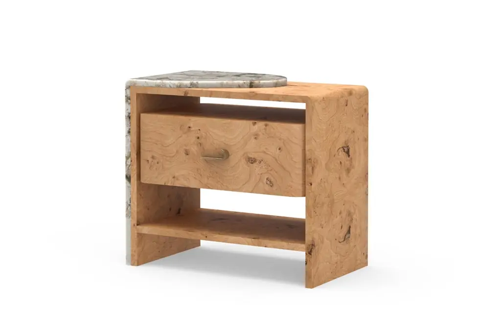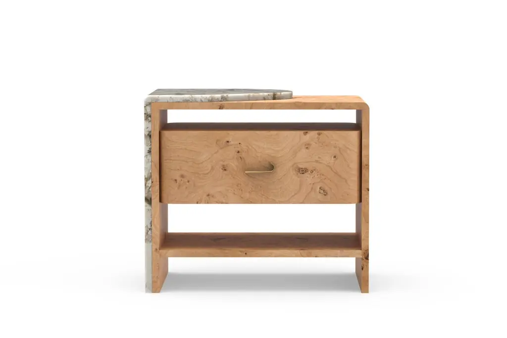 Belmonte Bedside Table, Modern Collection, Handcrafted in Portugal - Europe by GF Modern.The Belmonte bedside table, designed by Rute Martins, draws inspiration from the historic Portuguese village of the same name. Renowned for its centuries-old architecture, Belmonte is characterized by distinctive stone-built castles, churches, and bridges.The Belmonte bedside table embodies the village's rich history, reimagined with a modern, sophisticated touch. Masterfully crafted from Patagonian granite, brass and oak root, it serves as a refined homage to both heritage and contemporary design.The Belmonte bedside table can be customized in terms of dimensions, materials and finishes.Belmonte Bedside Table Material CodesST069 Patagonia Natural Quartz, Polished, Cream-Green, GlossWD105 Oak Root, Open-pore, Varnished, Natural White Oak Root, MatteME007 Brass, Brushed, Burnished, Varnished, Antique-Brass, High-GlossHandcrafted in Portugal - Europe by GreenappleUnique by design, Crafted by peopleGreenapple transforms contemporary spaces into exclusive narratives of design and craftsmanship. From custom-made furniture to bespoke interiors, each creation is a timeless work of art, shaped by master artisans who honor centuries-old techniques.Founded in 2005 by Sérgio Rebola and Rute Martins, Greenapple has earned global recognition among high-end clientele and leading design firms. While Rute designs each unique piece, Sérgio ensures uncompromising quality from design to production and from production to your home. We provide a seamless experience, offering short production lead times, worldwide delivery within 7 to 10 days, and white-glove service upon request.For U.S. clients, we can handle customs clearance, and offer white-glove service as well upon request.Night Stand, Bedside Table
