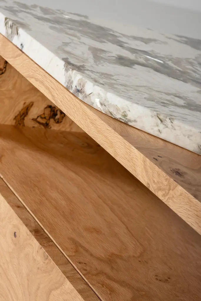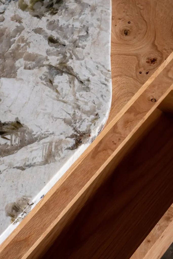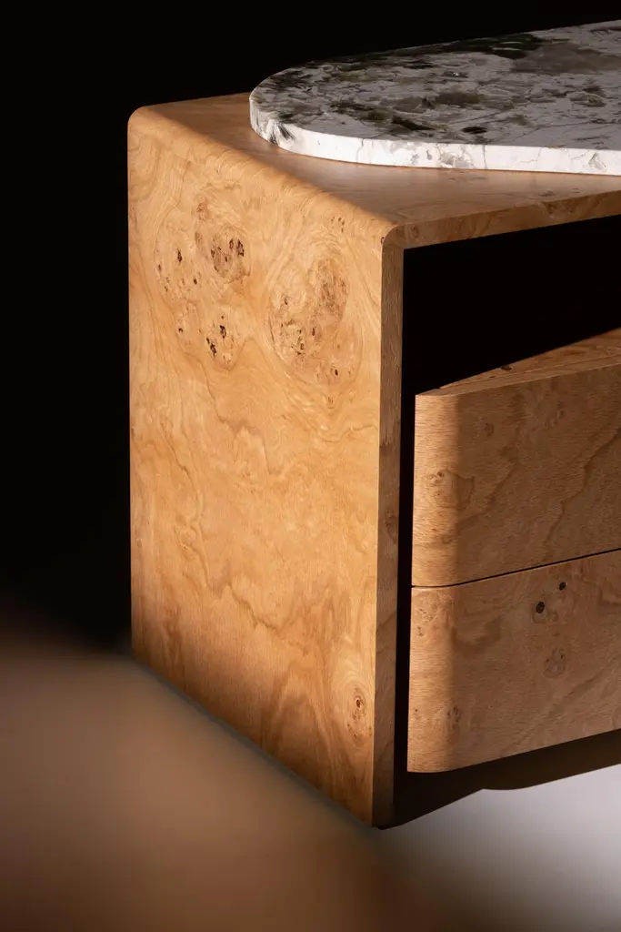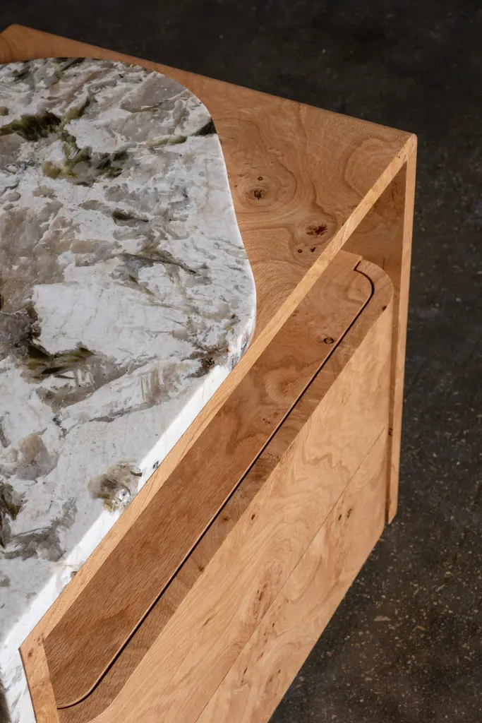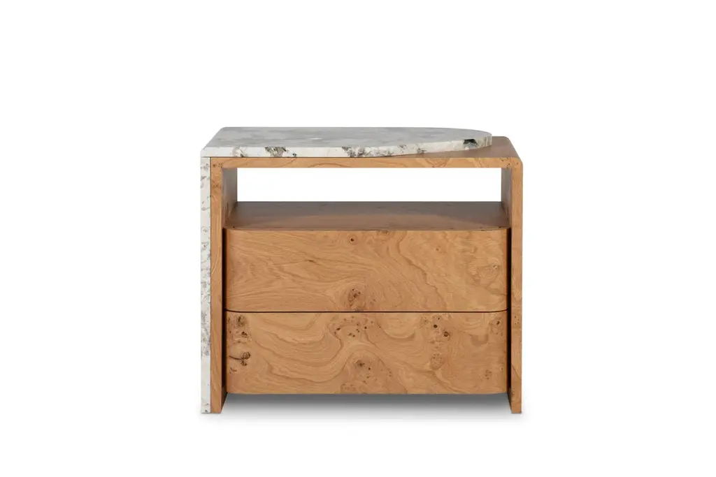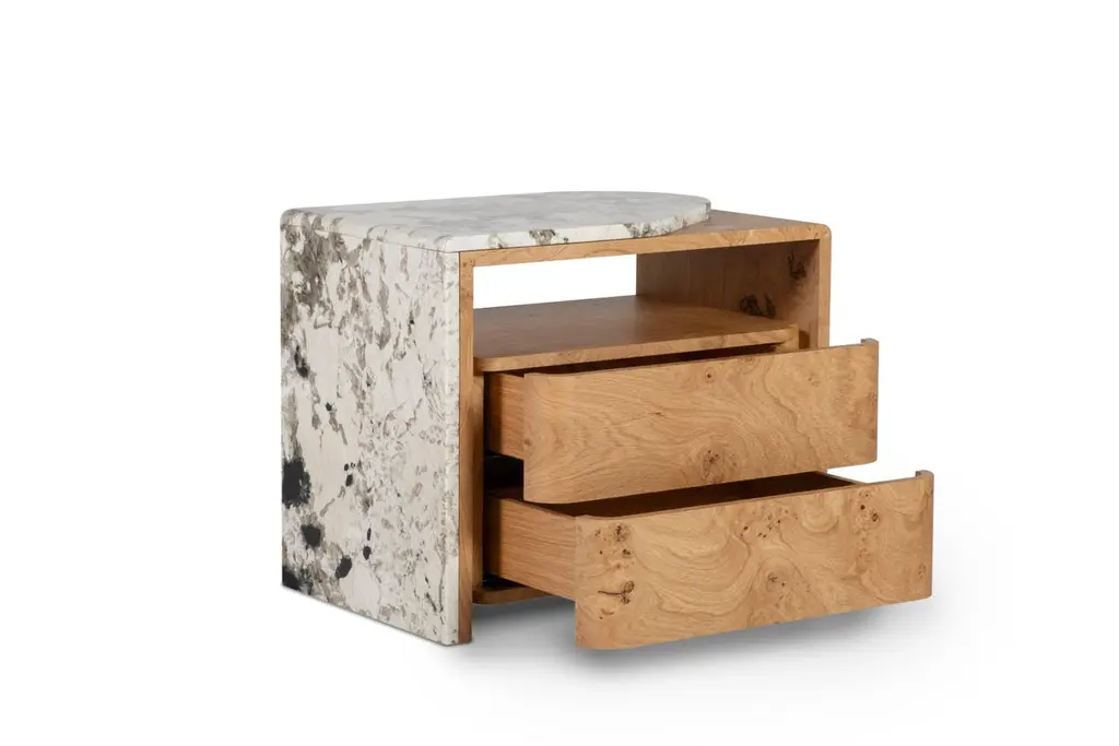 Belmonte Bedside Table, Modern Collection, Handcrafted in Portugal - Europe by GF Modern.The Belmonte bedside table, designed by Rute Martins, draws inspiration from the historic Portuguese village of the same name. Renowned for its centuries-old architecture, Belmonte is characterized by distinctive stone-built castles, churches, and bridges.The Belmonte bedside table embodies the village's rich history, reimagined with a modern, sophisticated touch. Masterfully crafted from Patagonian granite, brass and oak root, it serves as a refined homage to both heritage and contemporary design.The Belmonte bedside table can be customized in terms of dimensions, materials and finishes. Belmonte Bedside Table Material CodesST069 Patagonia granite cream/ white colour; polishedWD105 Oak root; natural colour; matt finishHandcrafted in Portugal - Europe by GreenappleUnique by design, Crafted by peopleGreenapple transforms contemporary spaces into exclusive narratives of design and craftsmanship. From custom-made furniture to bespoke interiors, each creation is a timeless work of art, shaped by master artisans who honor centuries-old techniques.Founded in 2005 by Sérgio Rebola and Rute Martins, Greenapple has earned global recognition among high-end clientele and leading design firms. While Rute designs each unique piece, Sérgio ensures uncompromising quality from design to production and from production to your home. We provide a seamless experience, offering short production lead times, worldwide delivery within 7 to 10 days, and white-glove service upon request.For U.S. clients, we can handle customs clearance, and offer white-glove service as well upon request.