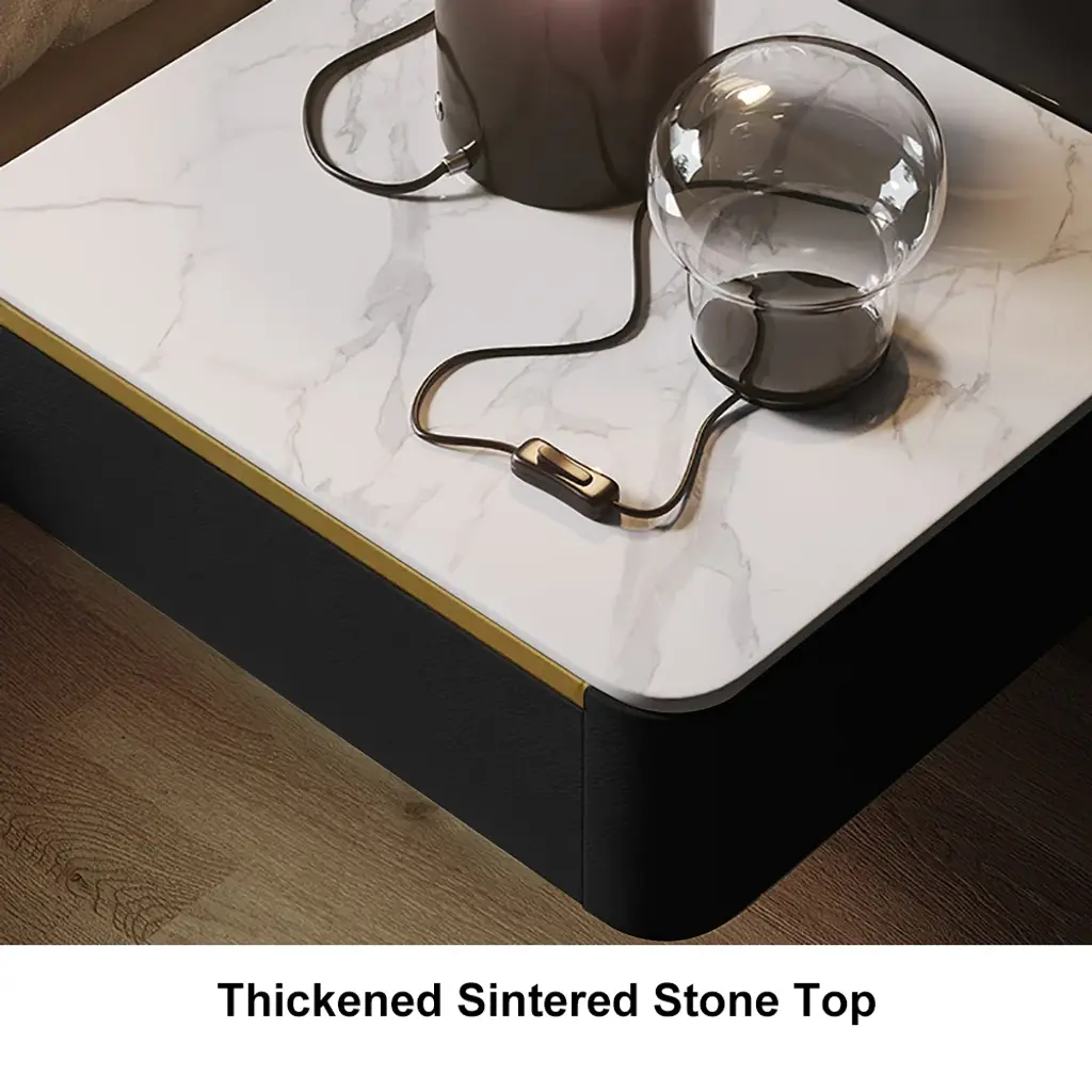 Modern Black Floating Nightstand 1 Drawer Bedside Table With Sintered Stone Top Set Of 2