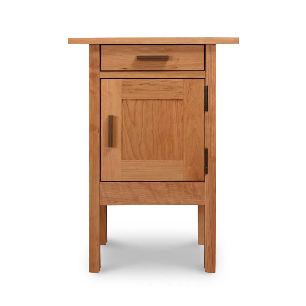 Mission or craftsman style furniture? Why not the best of both. The perfect blend of mission design elements and craftsman style coalesce in our Modern Craftsman 1-Drawer Nightstand with Door. As part of our Modern Craftsman collection, this handcrafted nightstand features clean bold lines, crisp right angles and a natural solid hardwood construction. Easily customize this piece in your choice of natural cherry, maple or walnut to suit your modern bedroom flawlessly.Base price represents nightstand in natural cherry with walnut pullsShown in natural cherry with walnut pulls and door hinges on rightMatching furniture available in our Modern Craftsman Furniture Collection