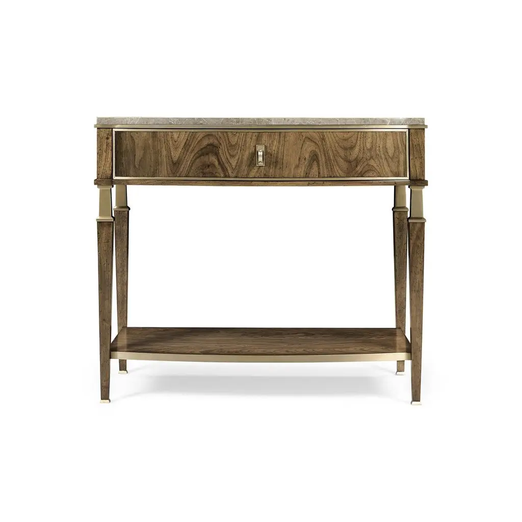 Modern French Marble Top Walnut Nightstands