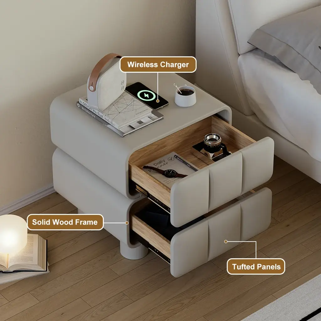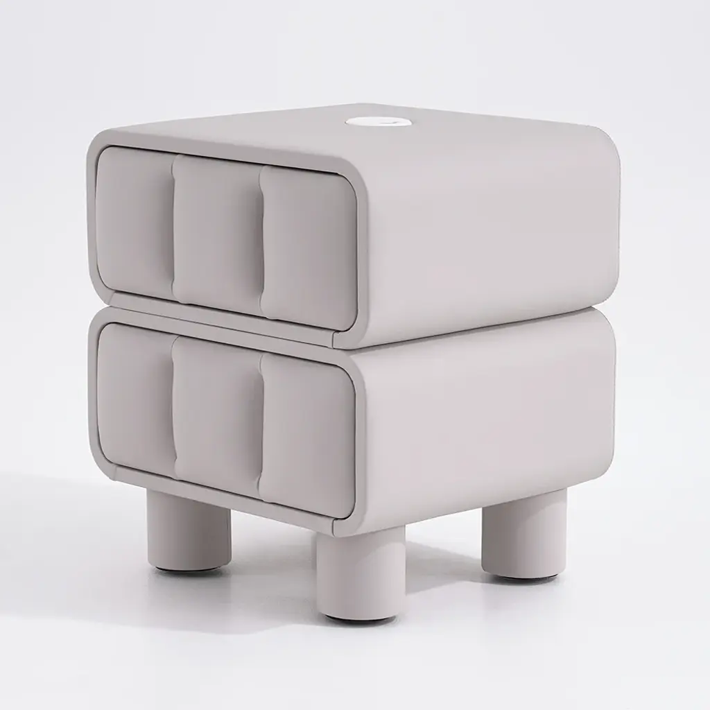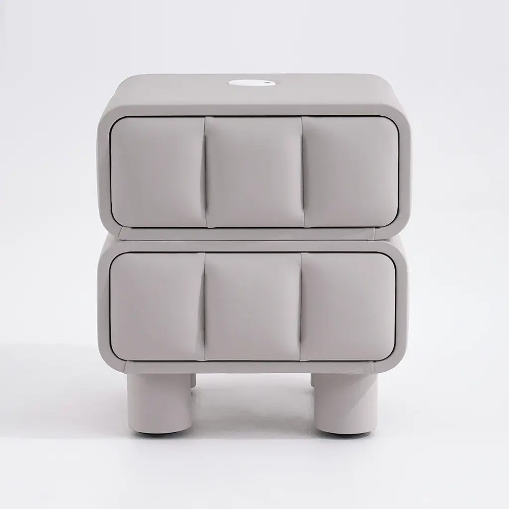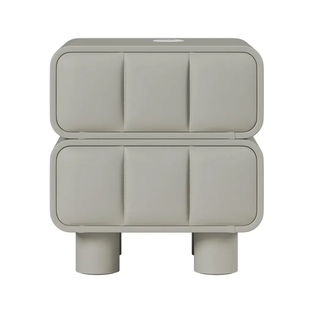 Modern Gray Smart Nightstand Leather Bedside Table With Wireless Charger & Usb Port