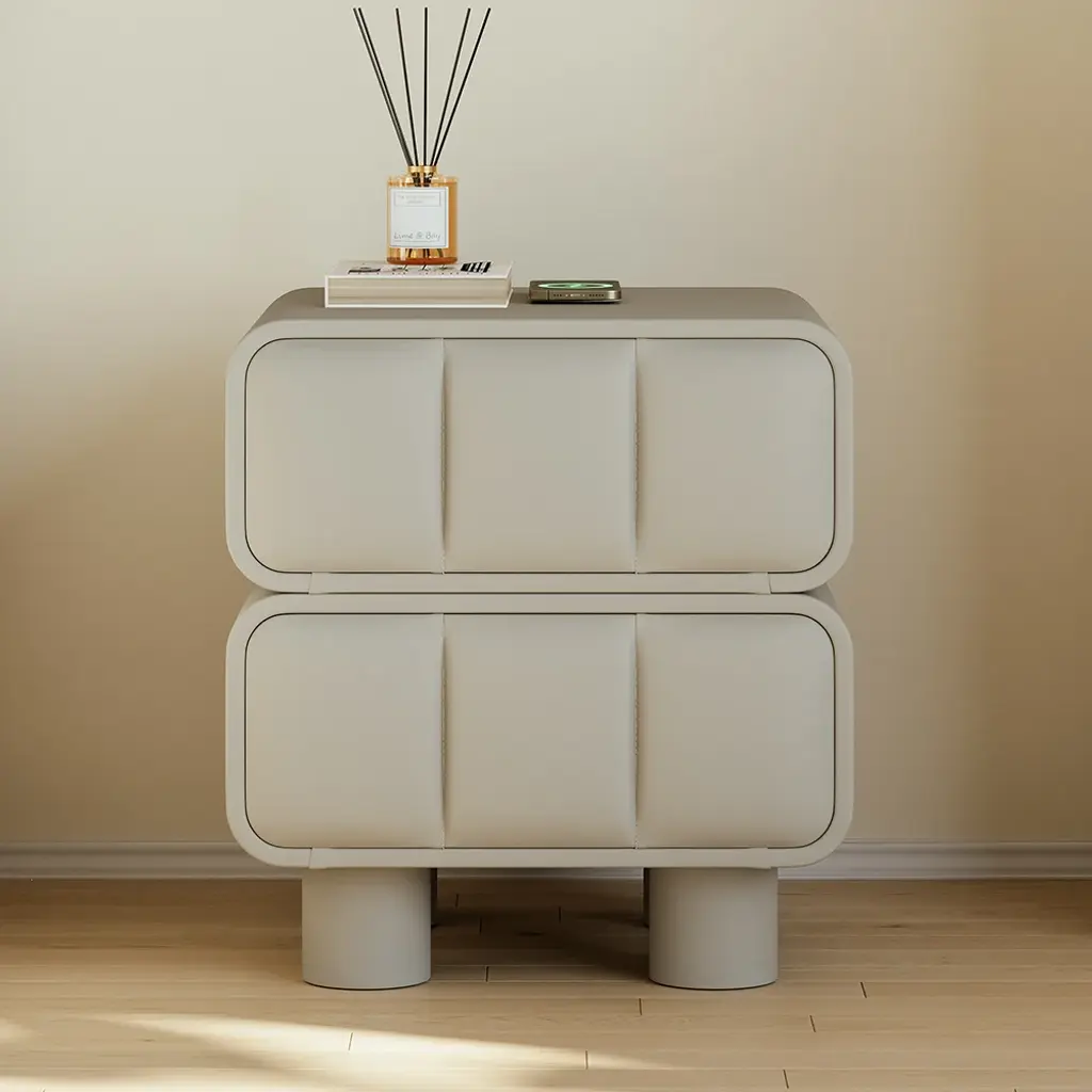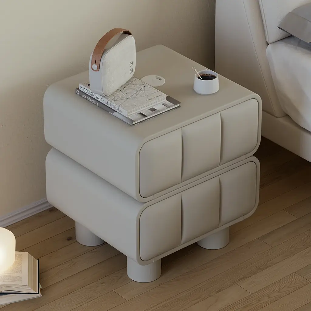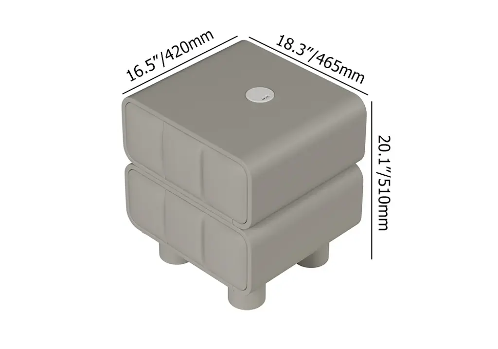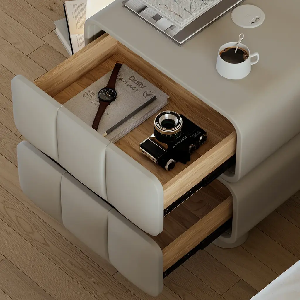 Modern Gray Smart Nightstand Leather Bedside Table With Wireless Charger & Usb Port