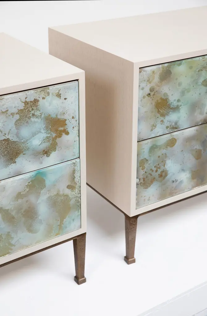 Modern Milano Two-Drawer Eglomise Nightstands By Ercole Home