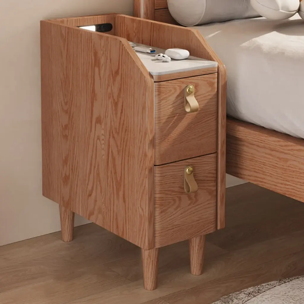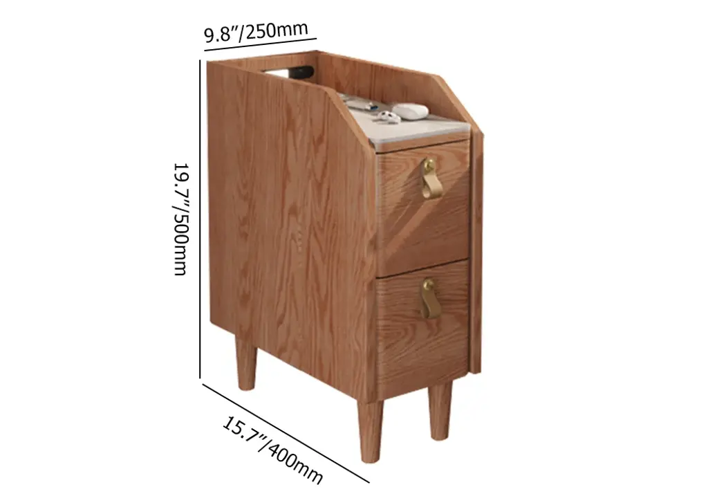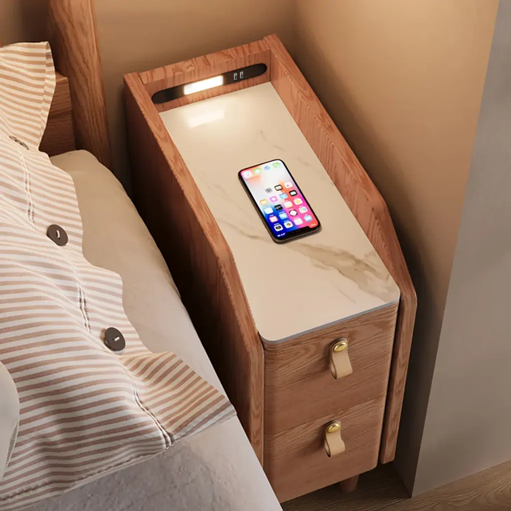 Modern Narrow Smart Nightstand Cherry Bedside Table With Sensor Light & Usb Port