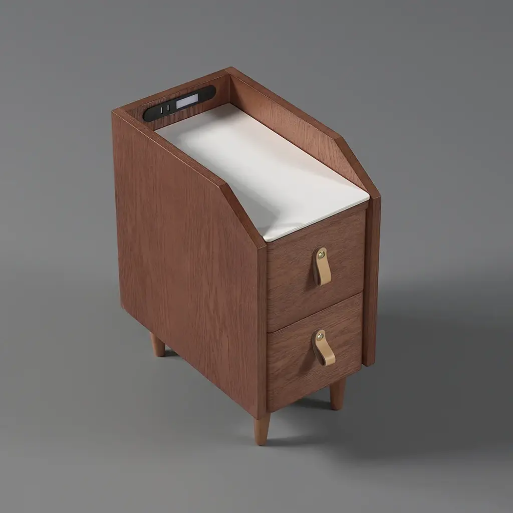 Designed for modern lifestyles, this narrow smart nightstand in warm cherry finish combines style with innovation. The motion-activated sensor light provides gentle illumination for nighttime, while the built-in USB port offers convenient device charging. Its space-saving design delivers full functionality even in compact bedrooms.