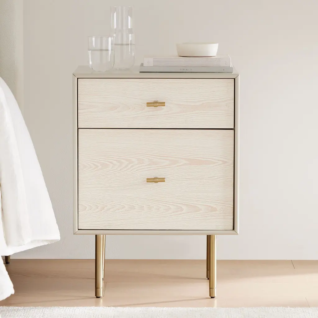 Sleek and just the right amount of glam. There's a drawer up top plus a cabinet below. Crafted from sustainably sourced wood. Contract Grade, so you know it's built to last.