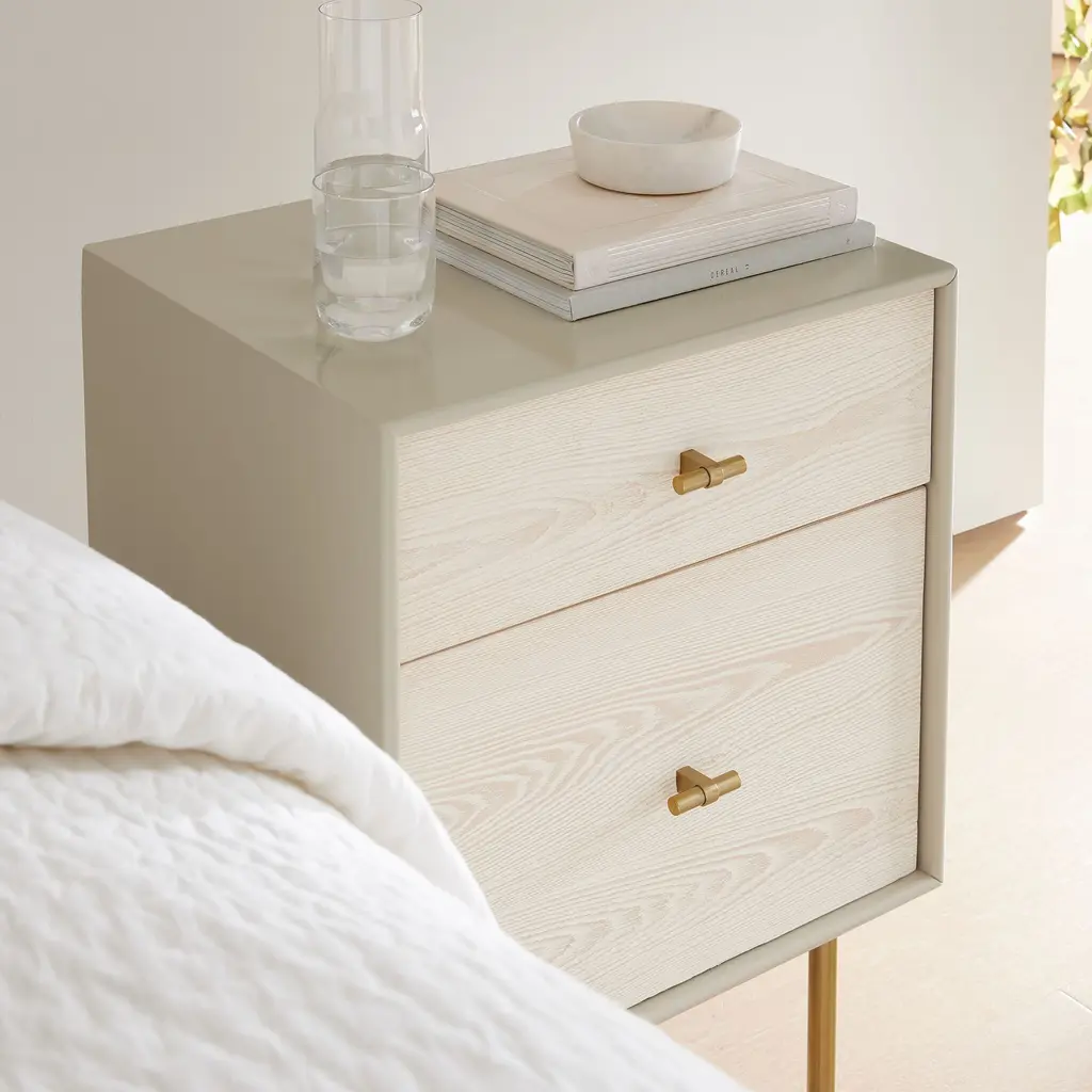 Modernist Wood & Lacquer Nightstand (19") - Winter Wood