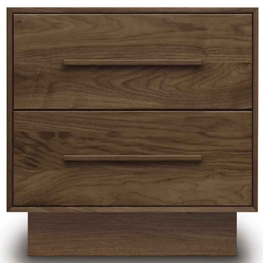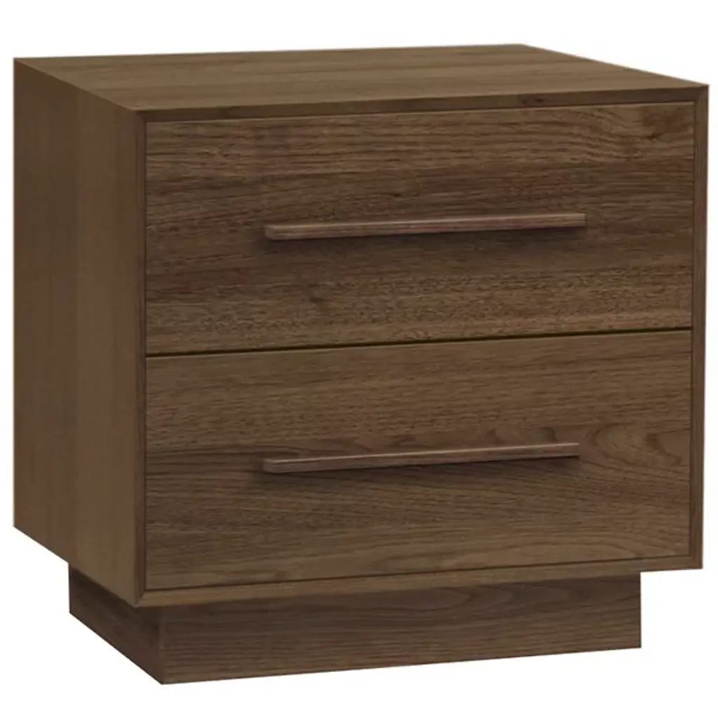 Appealing from every angle. Blending a stylish exterior with useful design, the Copeland Furniture Moduluxe 2 Drawer Nightstand places a captivating piece of furniture in your service. Solid Hardwood makes the nightstand stylish and intriguing, with natural burls and knots worked throughout the body. The angular frame and flat base enhance the Wood’s visual impact, showcasing the material and careful craftsmanship. Along the interior, self-closing drawers with full extension make useful storage space even more convenient. A sturdy structure and two substantial drawers allow you to store whichever items you want access to while the nightstand’s attractive exterior offers a serious influx in bedroom style.
