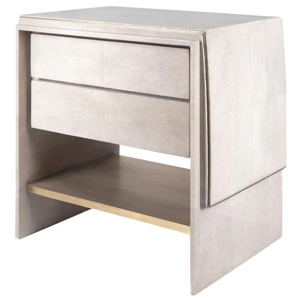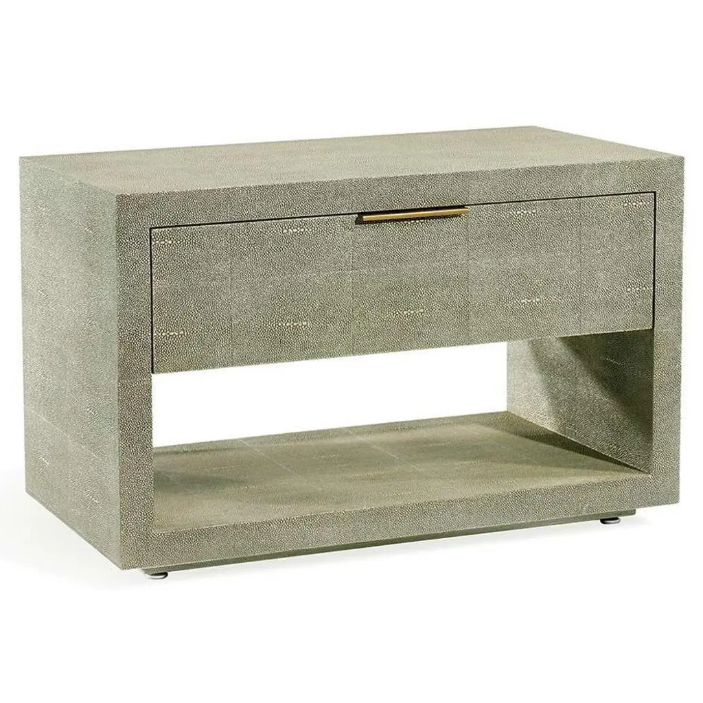 Montaigne Modern Olive Green Faux Shagreen Brass Iron Nightstand