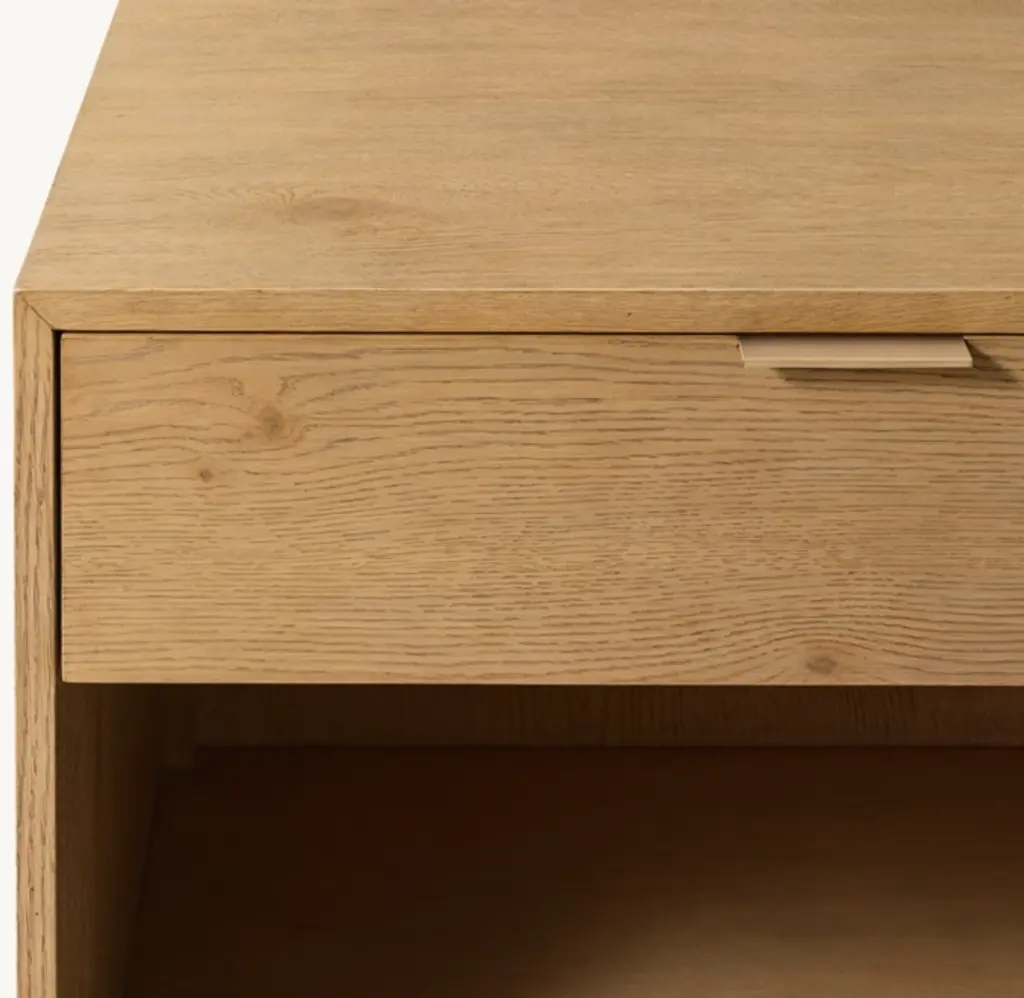 A seamless union of rusticity and refinement, Montecito from the Van Thiels celebrates the enduring spirit of minimalist design. Handcrafted of wire-brushed American white oak, the silhouette's crisp lines, mitered edging and slender metal hardware are an elegant juxtaposition to the wood's distinctive knots and pronounced grain. SHOP THE ENTIRE COLLECTION