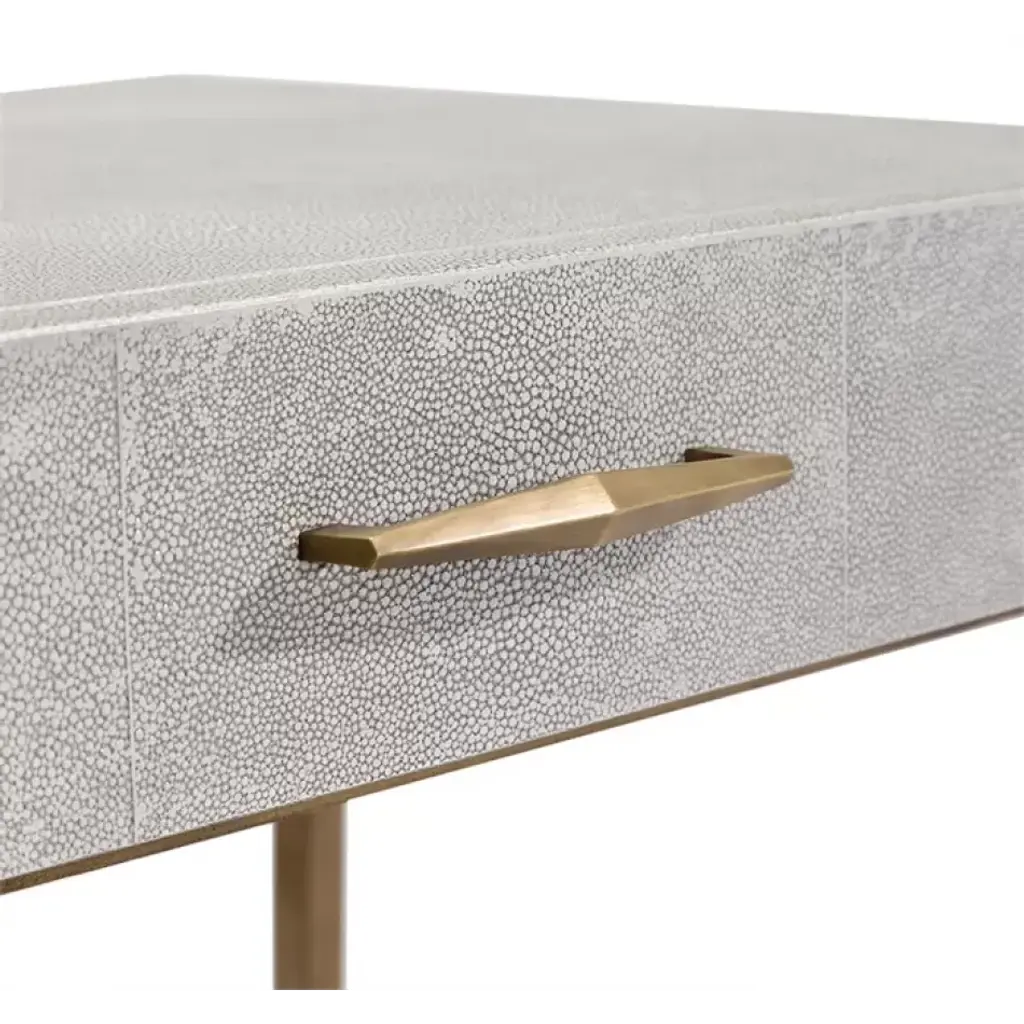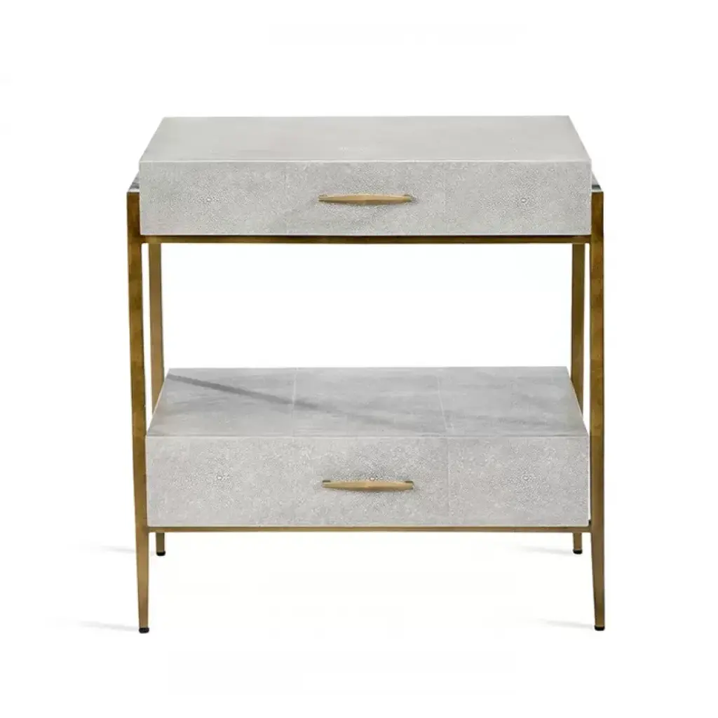 Featuring grey shagreen and antique gold finished metal hardware, the Morand Bedside Chest makes a luxurious, classic statement.