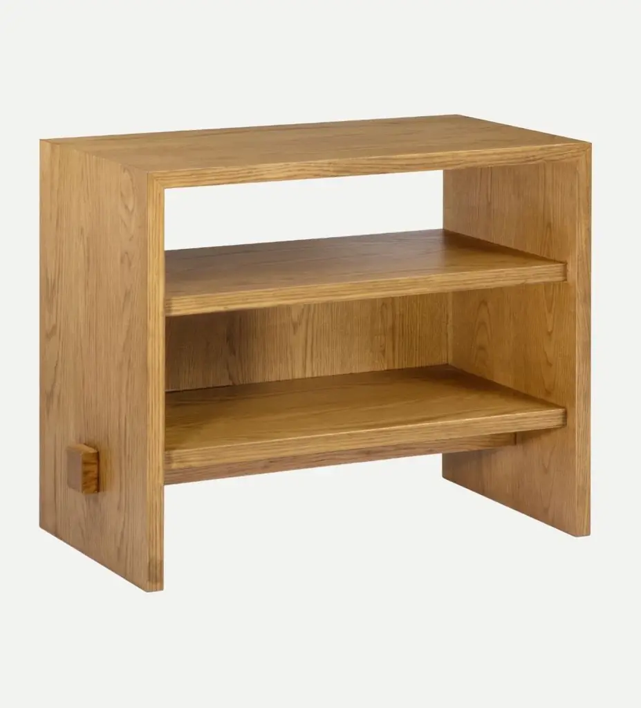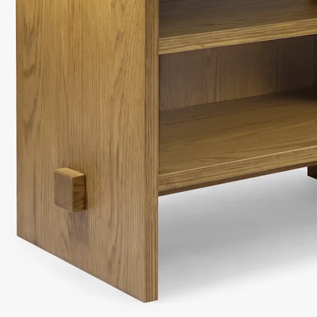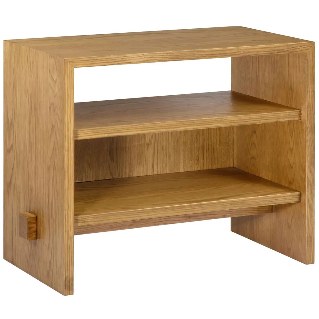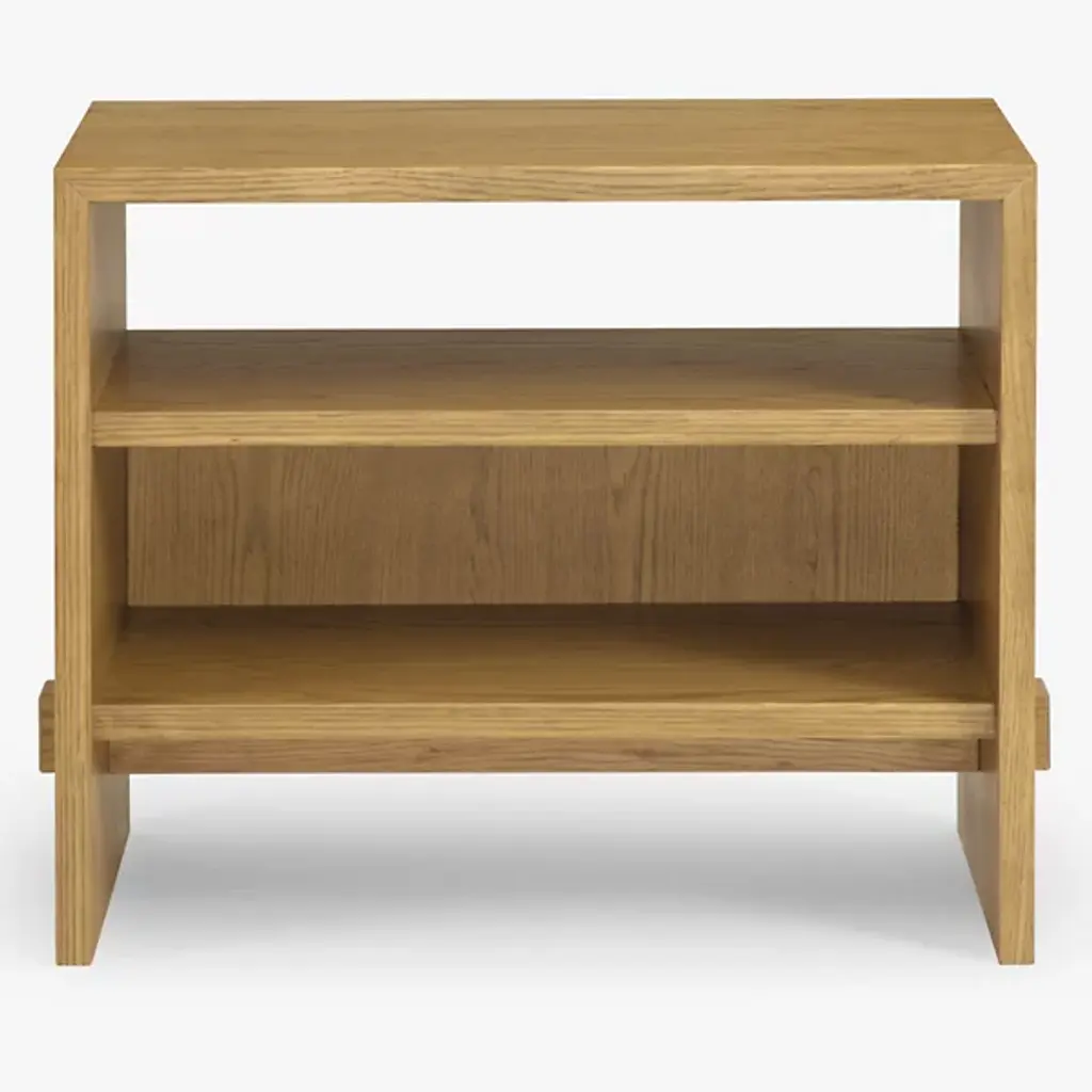The Muckleroy Nightstand from Alder & Ore is a bedside companion that murmurs sagas of craftsmanship. Its oak body, enhanced with veneers, showcases nature's artistry in every grain and knot. The open-shelf design invites you to display cherished mementos or keep nighttime essentials within easy reach. Its clean lines and natural warmth complement a variety of bedroom styles, while its sturdy construction ensures it will stand guard by your bed for years to come.