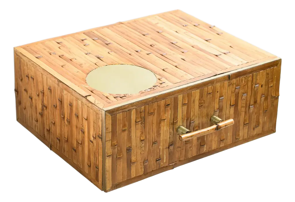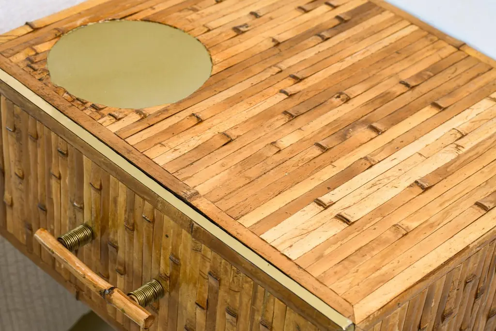 Natural Bamboo And Brass Bedside Cabinet Wall Mounted
